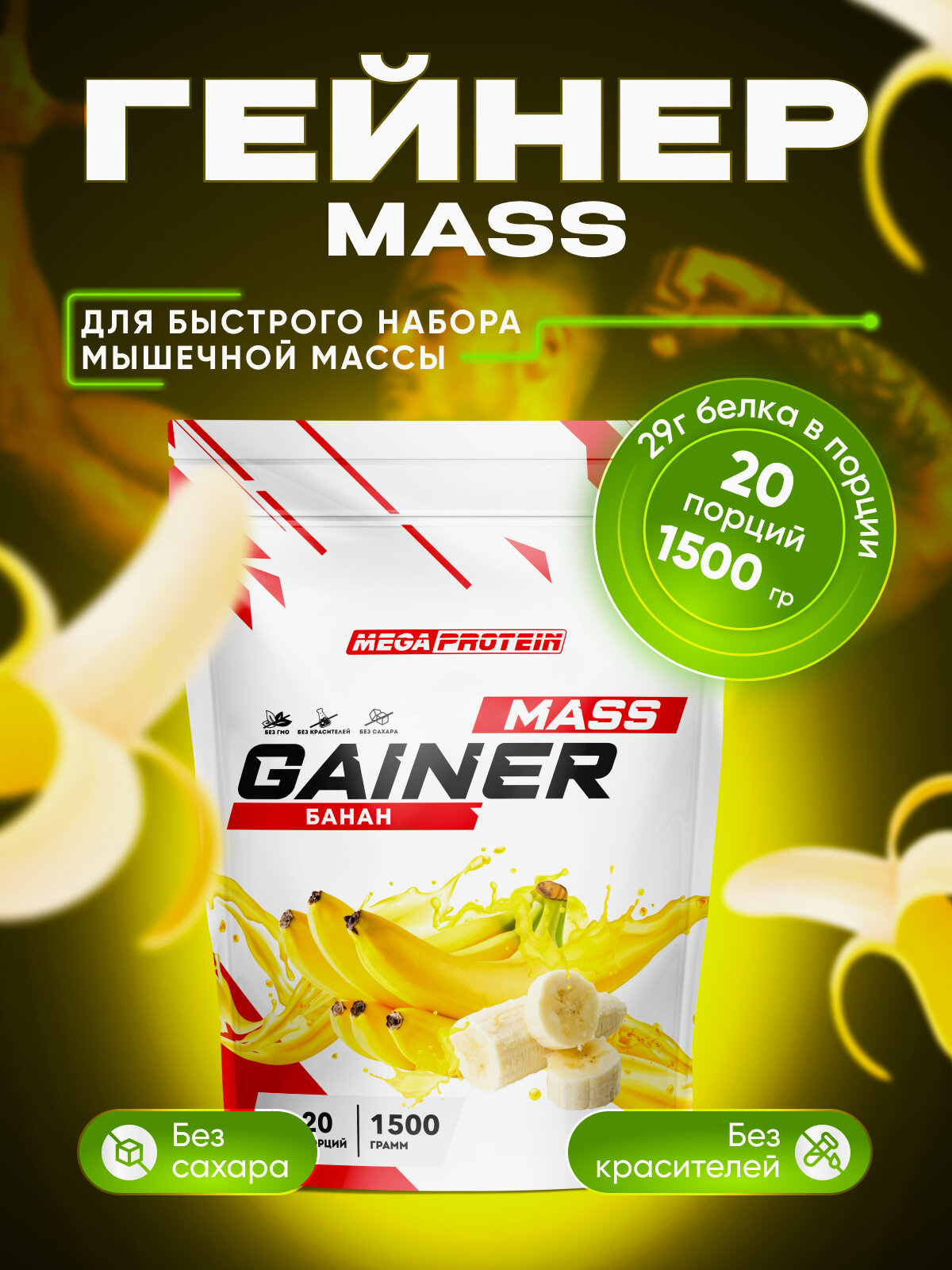 Гейнер для набора массы / Высокобелковый гейнер Mass Gainer Megaprotein, Банан / 1500 гр, 20 порций 2 237 ₽