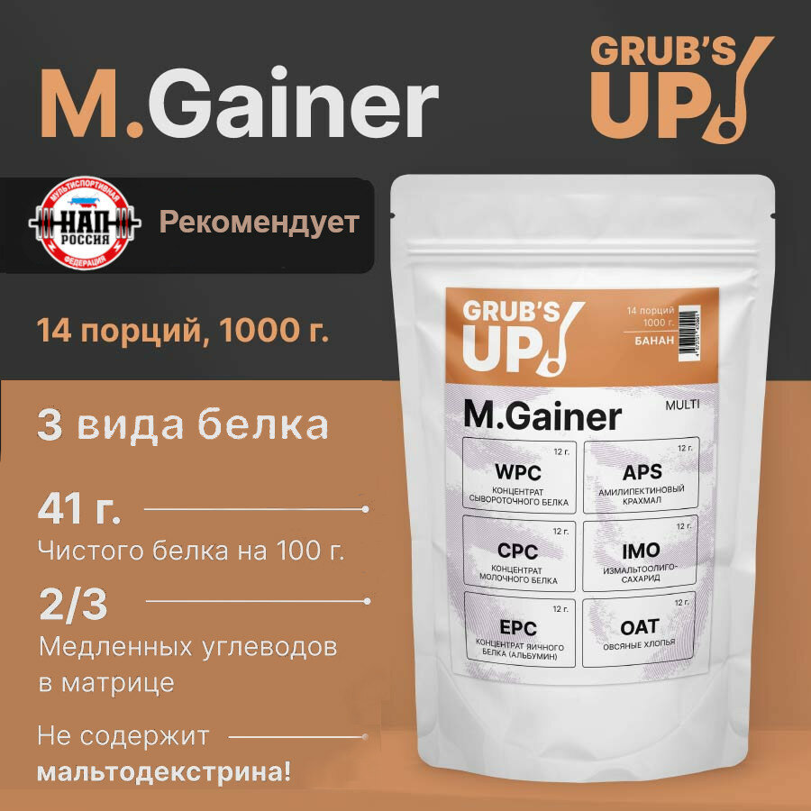 10 цен на Белково-углеводный коктейль (гейнер) Grub's up! M.Gainer банан 1кг