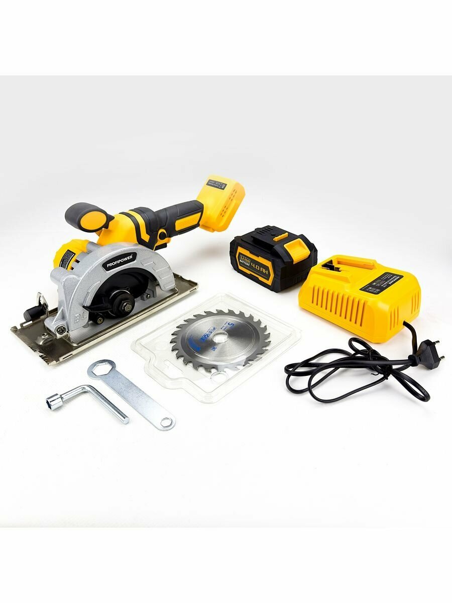 Бесщеточная Аккумуляторная циркулярная пила Profipower DWDHS-18V (1шт Li-ion аккумулятора 4.0Ач,125мм,18В,0-7000 об/мин, в коробке)