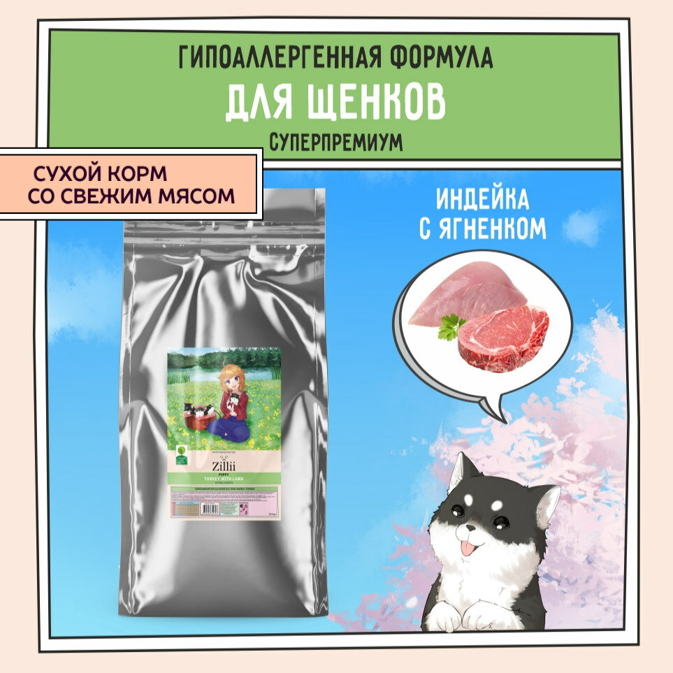 Корм сухой для щенков 3 кг, гипоаллергенный ZILLII (Зилли) Puppy, Индейка с Ягнёнком 2 188 ₽