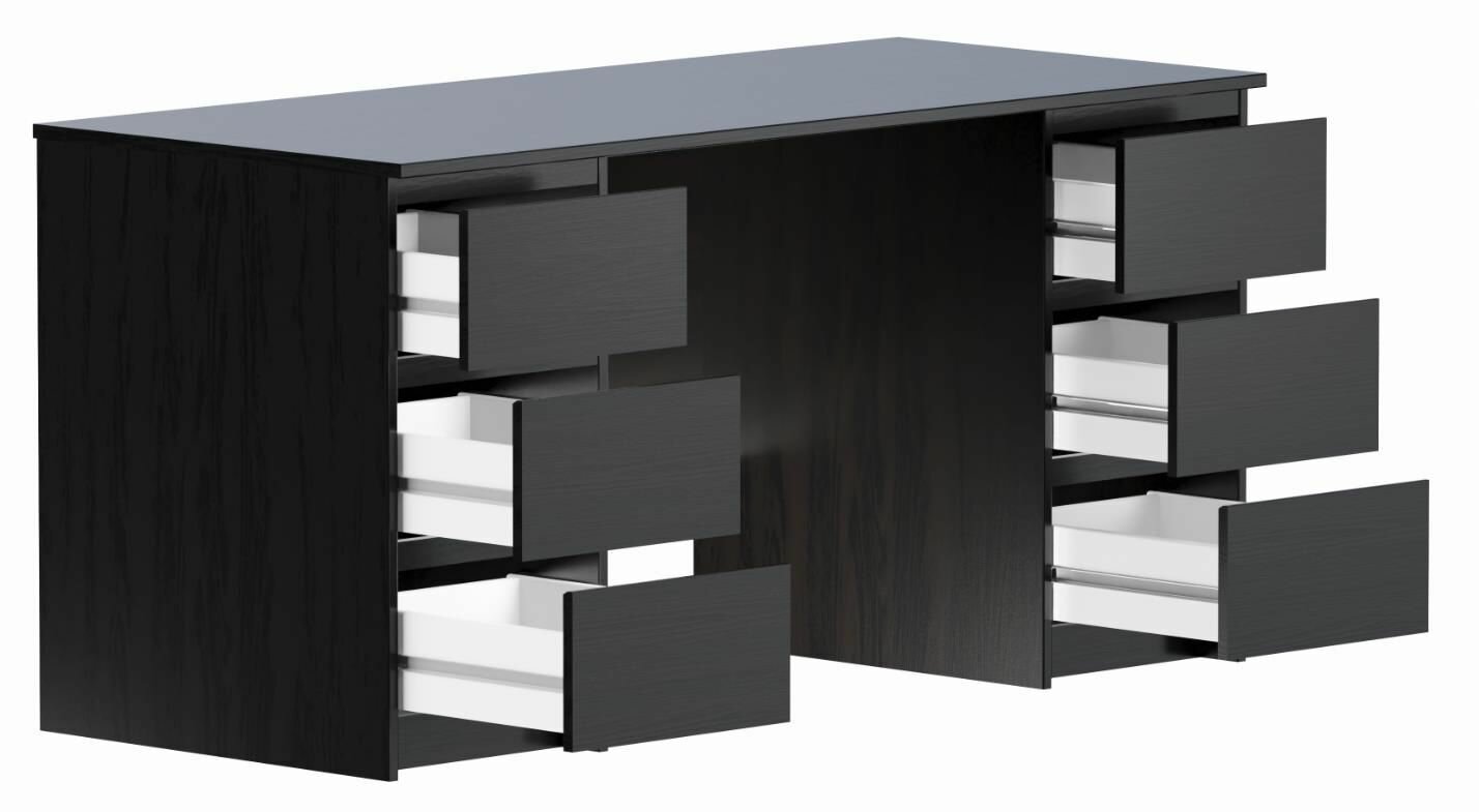 Стол письменный ГУД ЛАКК Кастор, 6 ящиков, 151х65х75 см, черный, дуб венге