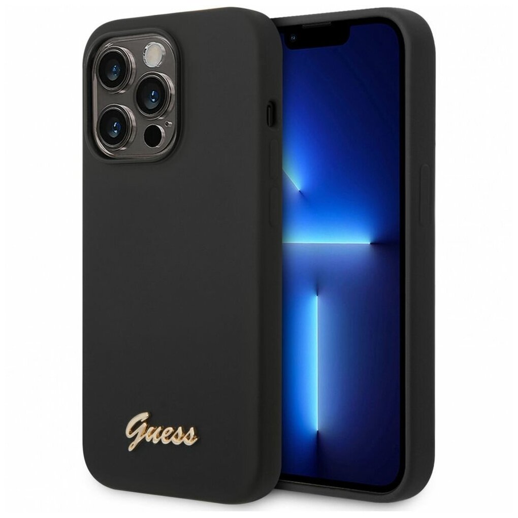 Чехол CG Mobile Guess Liquid silicone Gold metal logo Hard Black для iPhone 14 Pro чёрный информация: