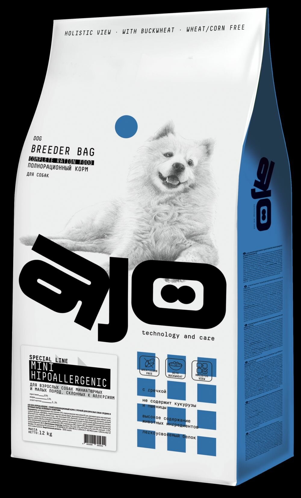 10 цен на AJO Mini Hypoallergenic сухой для собак миниатюрных и малых пород, склонных к аллергиям с гречкой 12кг