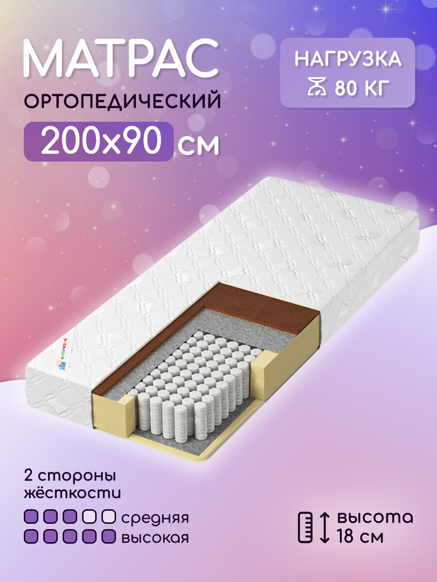 Матрас 200 на 90 см на 18 см - пружинный блок 512 на место -две стороны жесткости - Капризун Микс Хард Плюс