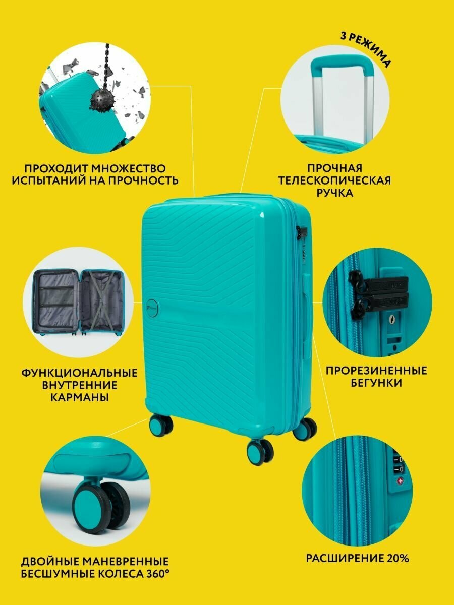 Чемодан на колесах Xiaomi, PP LUGGAGE бирюзовый, размер L информация: