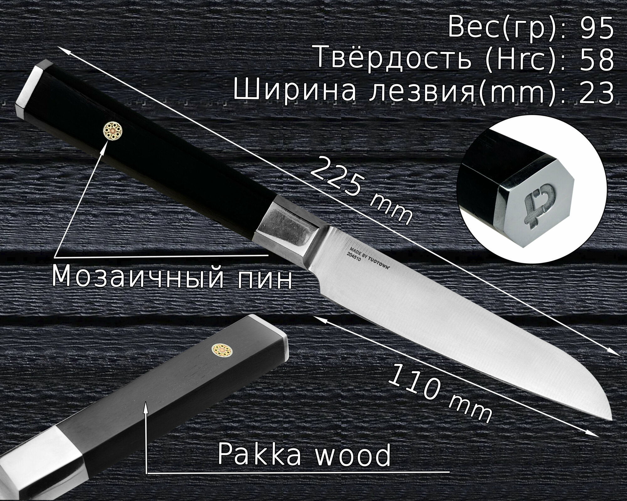 Tuotown Поварской шеф-нож Сантоку 18 см — Santoku EARL кухонный нож для шинковки и нарезки. TuoTown. Сталь 1.4116, рукоять Пакка/ABS. + фруктовый нож.
