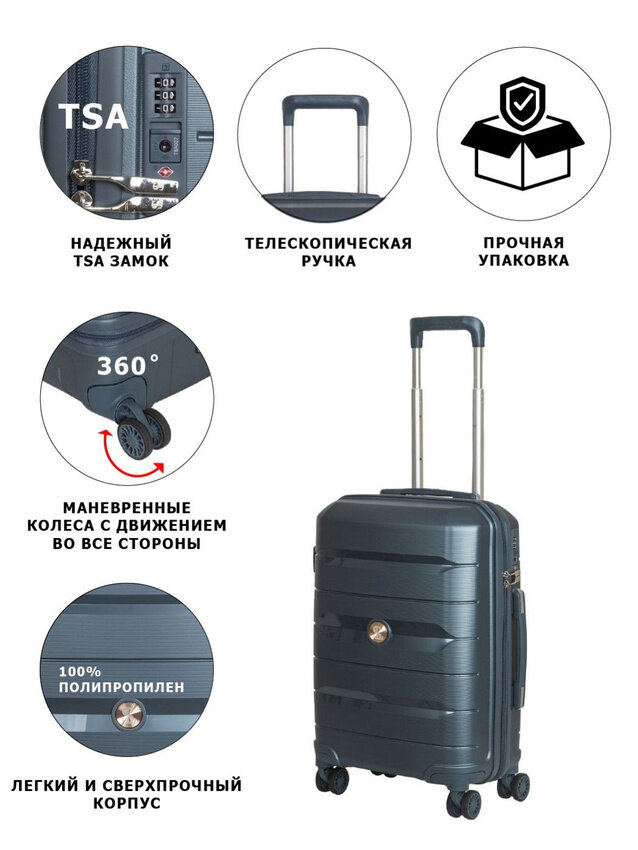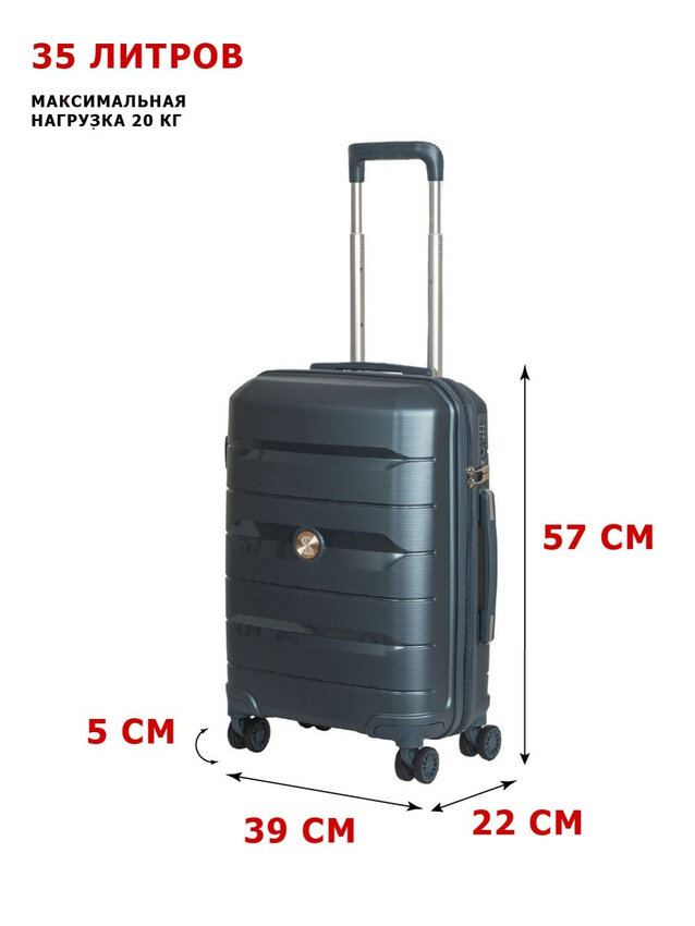 Отзывы на Чемодан S облегченный из полипропилена Supra Luggage STS-2004-S,Ice Blue, замок TSA, 35 литров, 4 колеса с поворотом на 360 градусов, 39X22X57 см