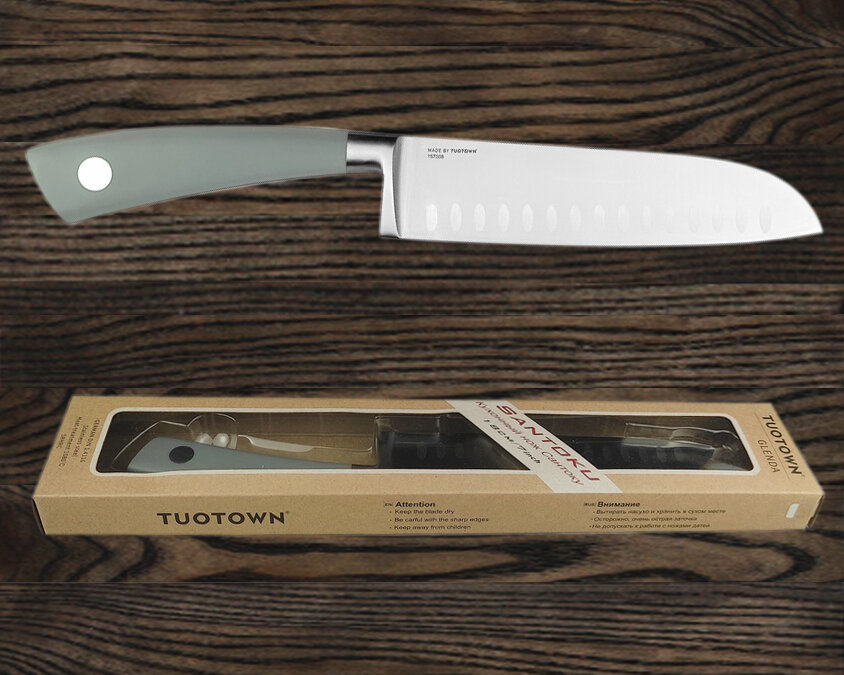 Отзывы на Нож кухонный для шинковки и нарезки Сантоку 18 см — поварской Santoku Glenda. TuoTown. Клинок German .4116, рукоять ABS пластик