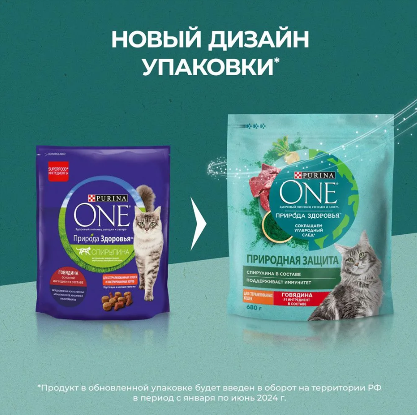 Purina One Сухой корм для кошек говядина и спирулина 680гр х 2шт информация: