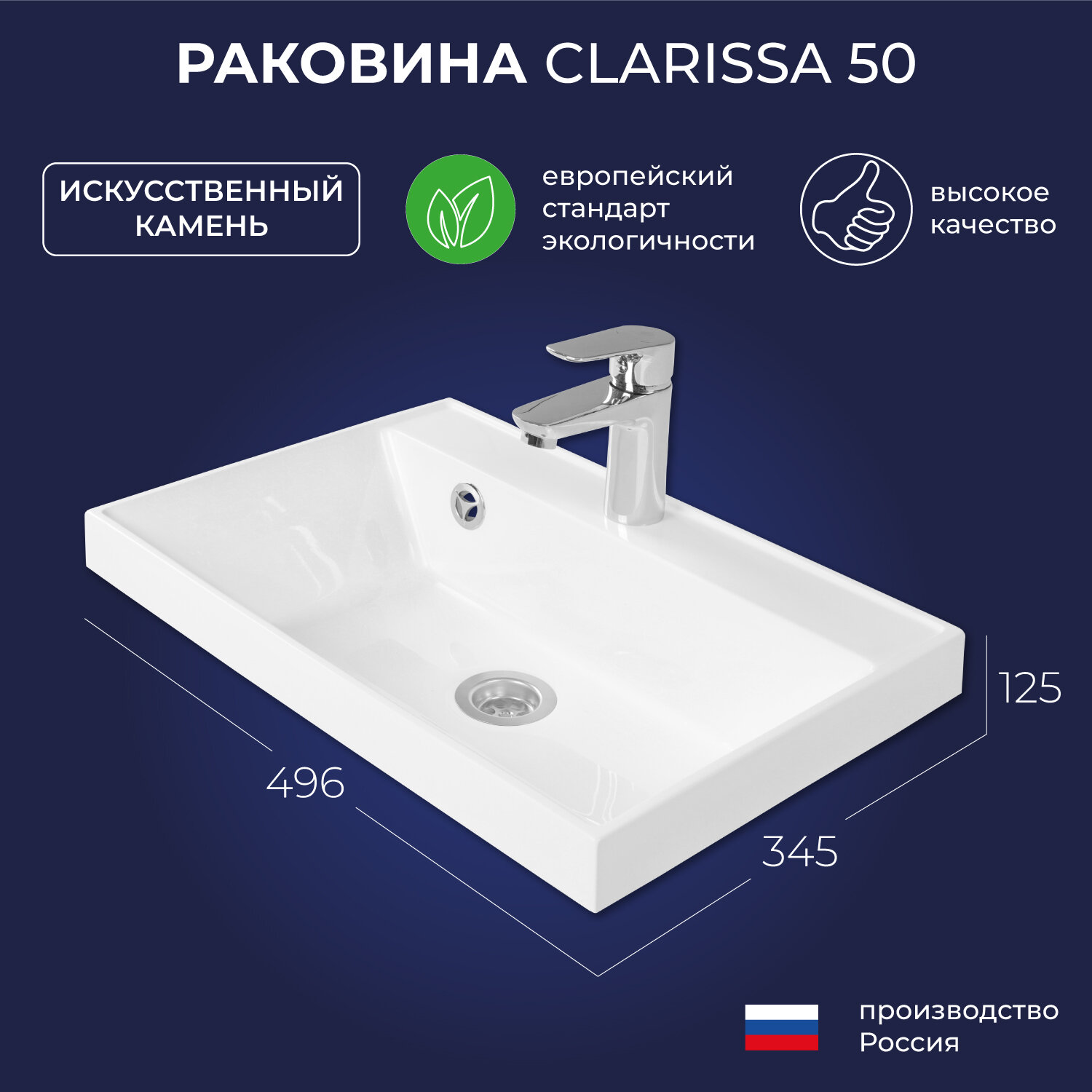 Раковина в ванную Clarissa 50 498х347х128 9 990 ₽