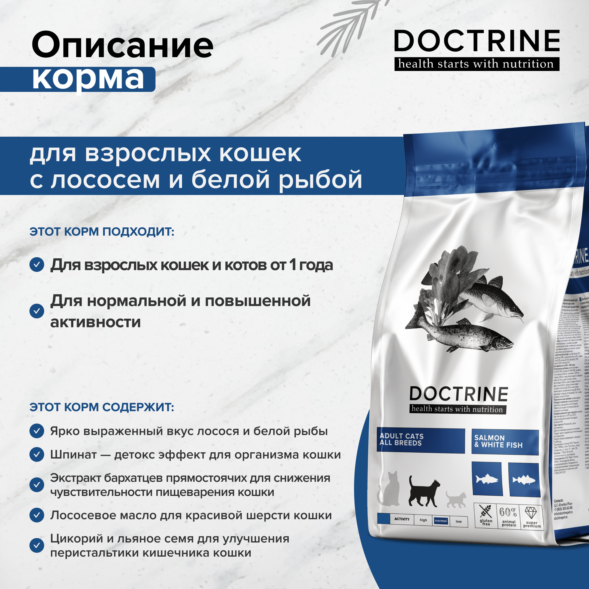 DOCTRINE Сухой корм для взрослых кошек с лососем и белой рыбой, 3 кг информация: