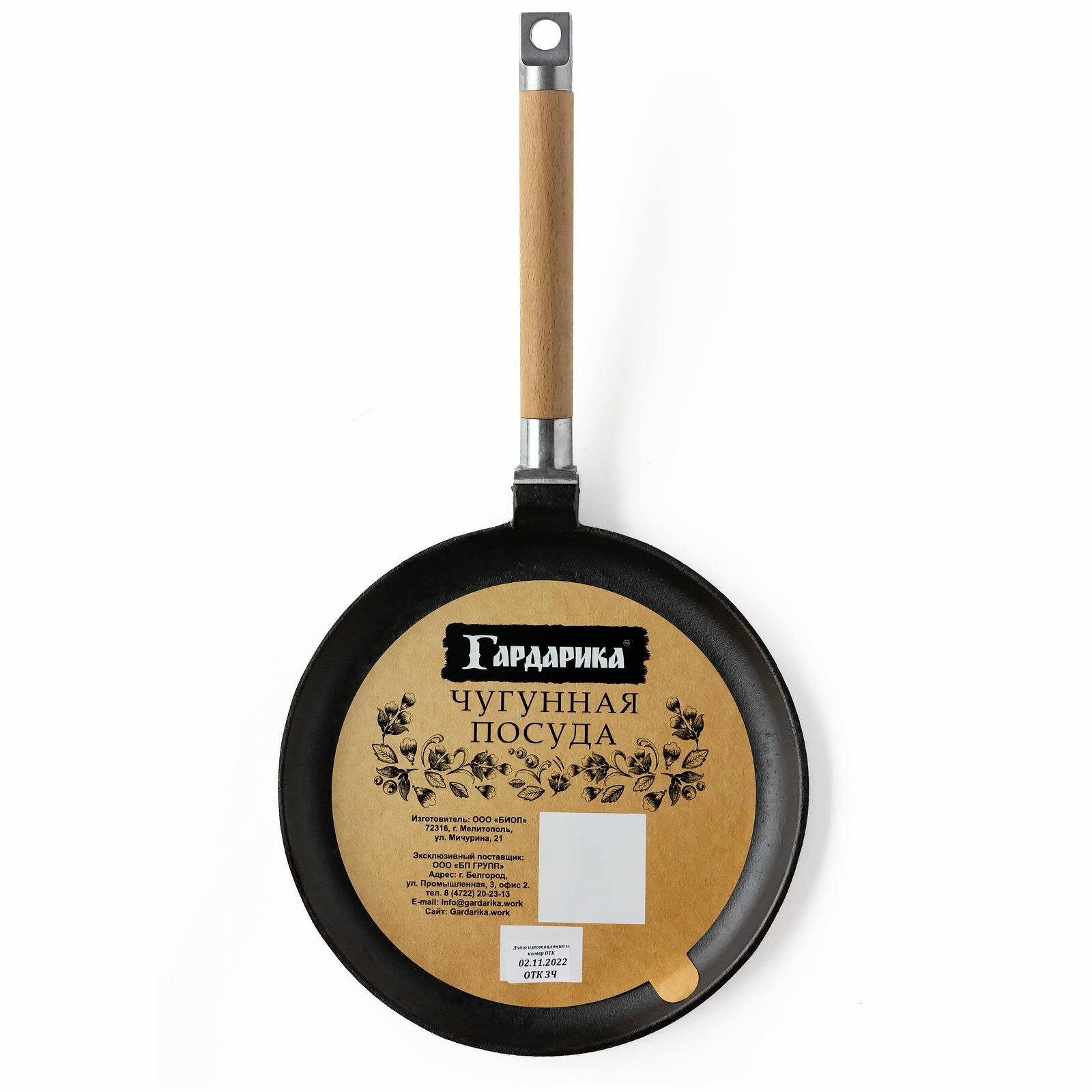 Сковорода чугун, 20 см, Гардарика, 0120, съем руч, с дерев ручк, индукц