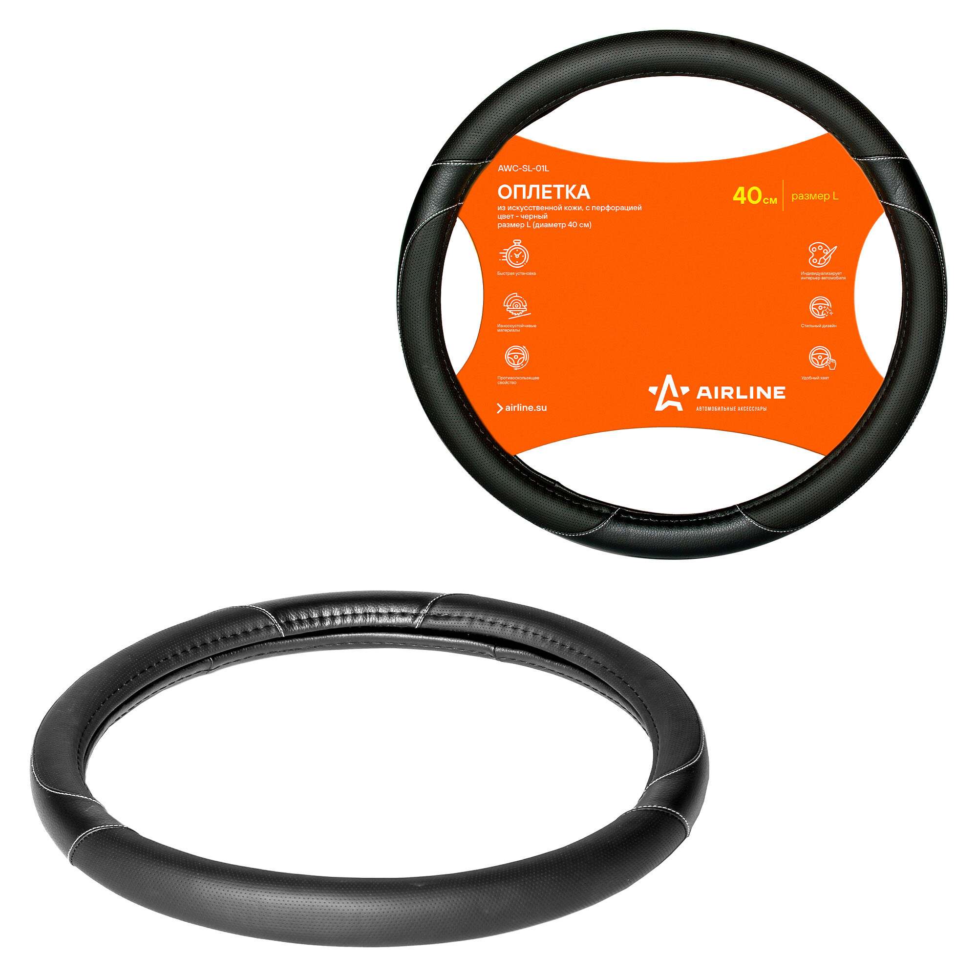 Оплетка на руль, искусственная кожа с перфорацией, черная, 40 см / L AWC-SL-01L AIRLINE
