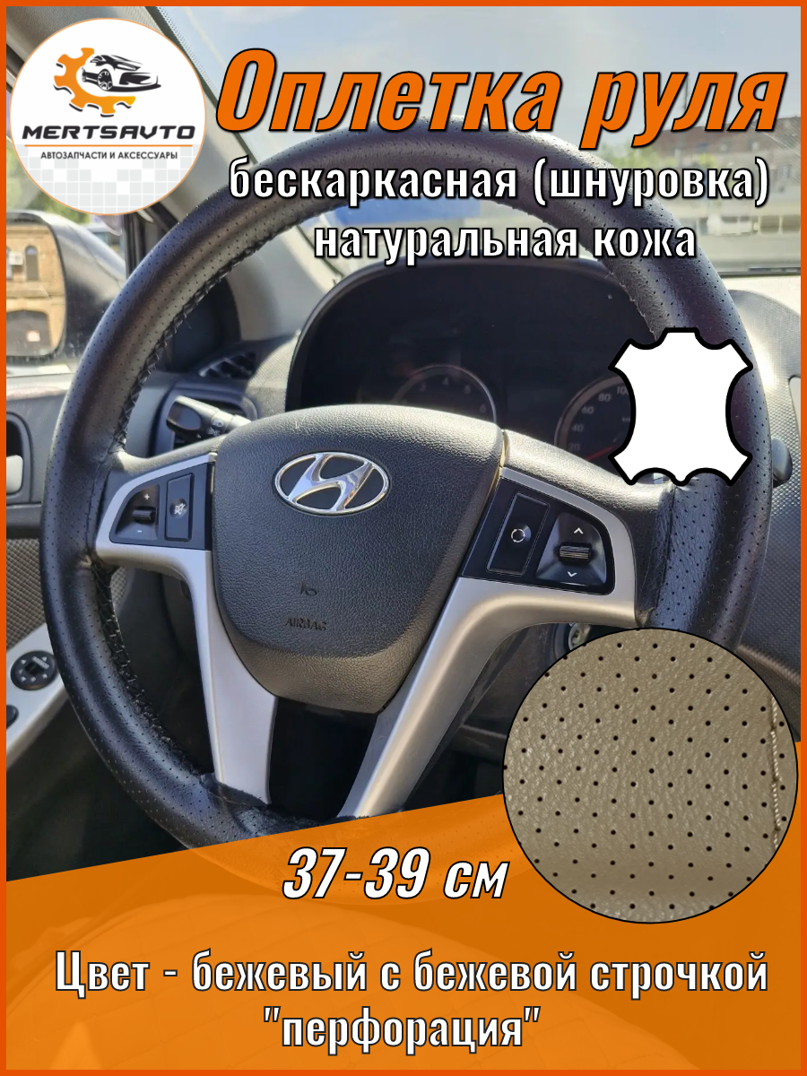 Отзывы на Оплетка руля со шнуровкой, оплетка рулевого колеса бескаркасная размер М 37-39 см - бежевый с бежевой строчкой "перфорация"