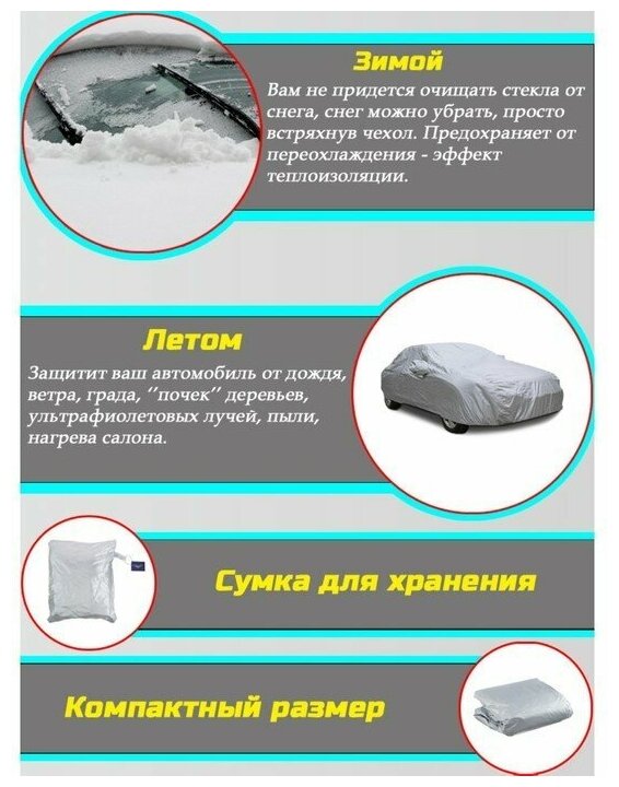 Тент автомобильный водонепроницаемый, полиэстер, M, 430x165x120 см 2 482 ₽