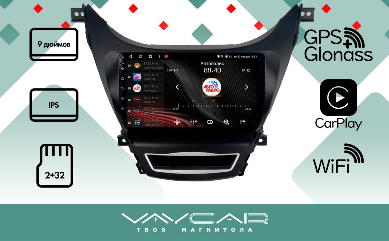 Магнитола Vaycar 09V2 для HYUNDAI Elantra 2011-2013 (Андроид, 2+32, 8 ядер, WiFi, BT, 4G, GPS, QLED 9")