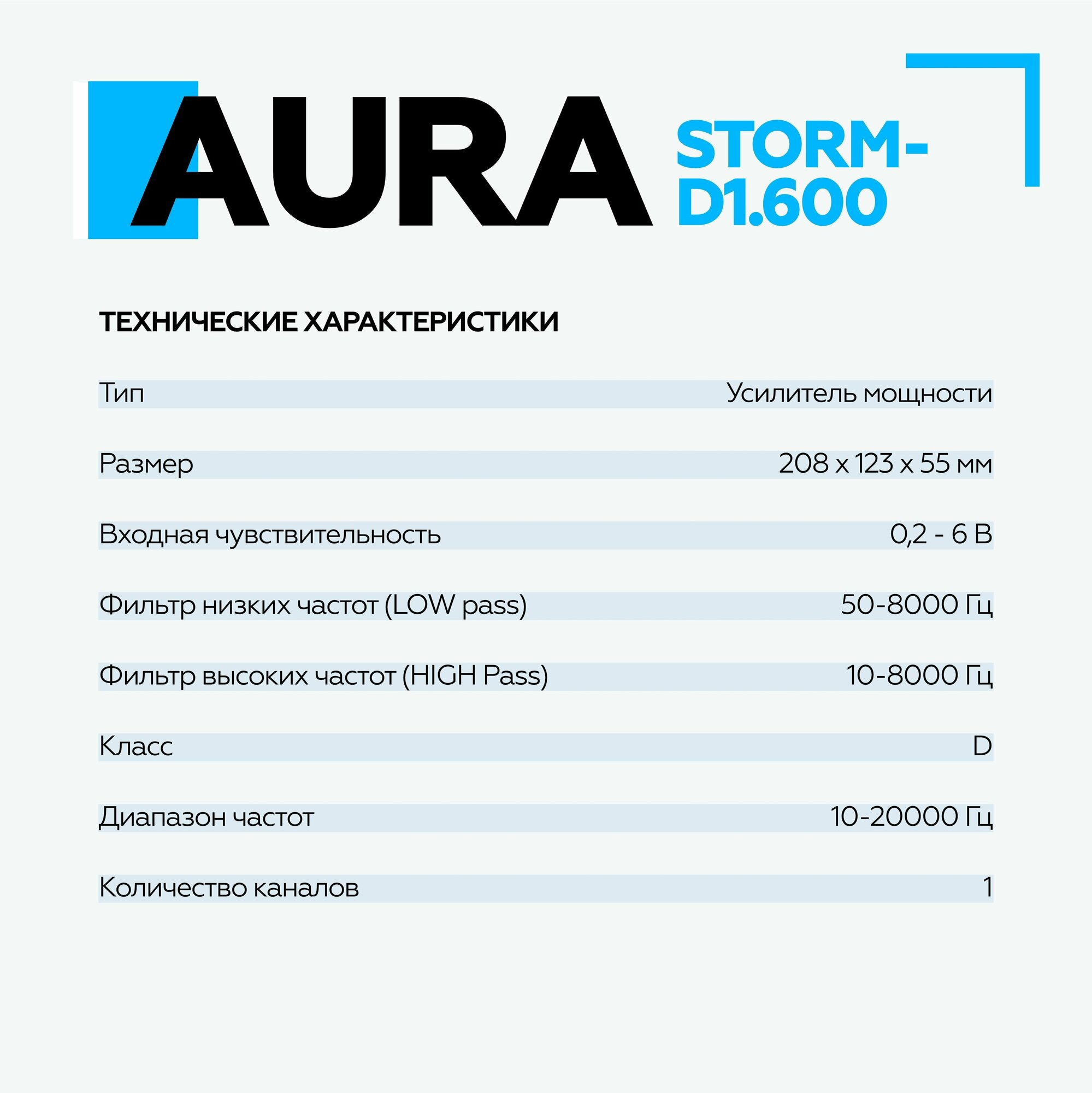Автомобильный усилитель 1-канальный Aura Storm-D1.600 информация: