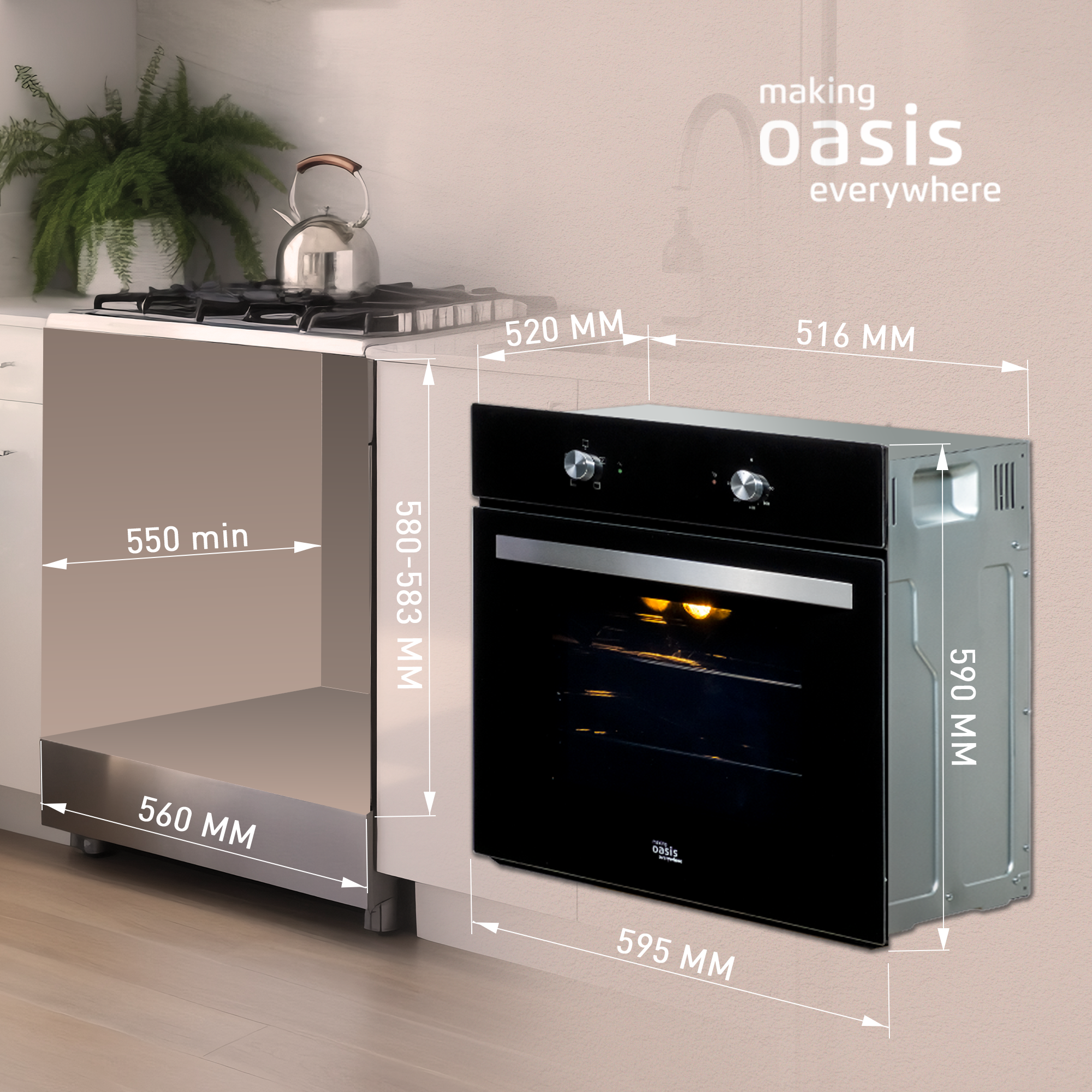 Духовой шкаф встраиваемый LEX EDM 077 C IV, 60 см, с конвекцией, механические ручки, объем 60 л, аналоговый таймер, телескопические направляющие.