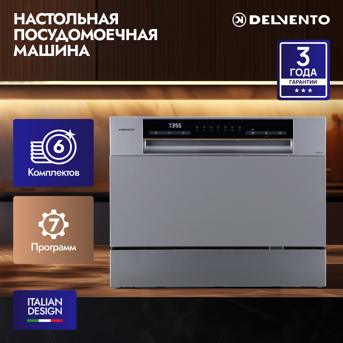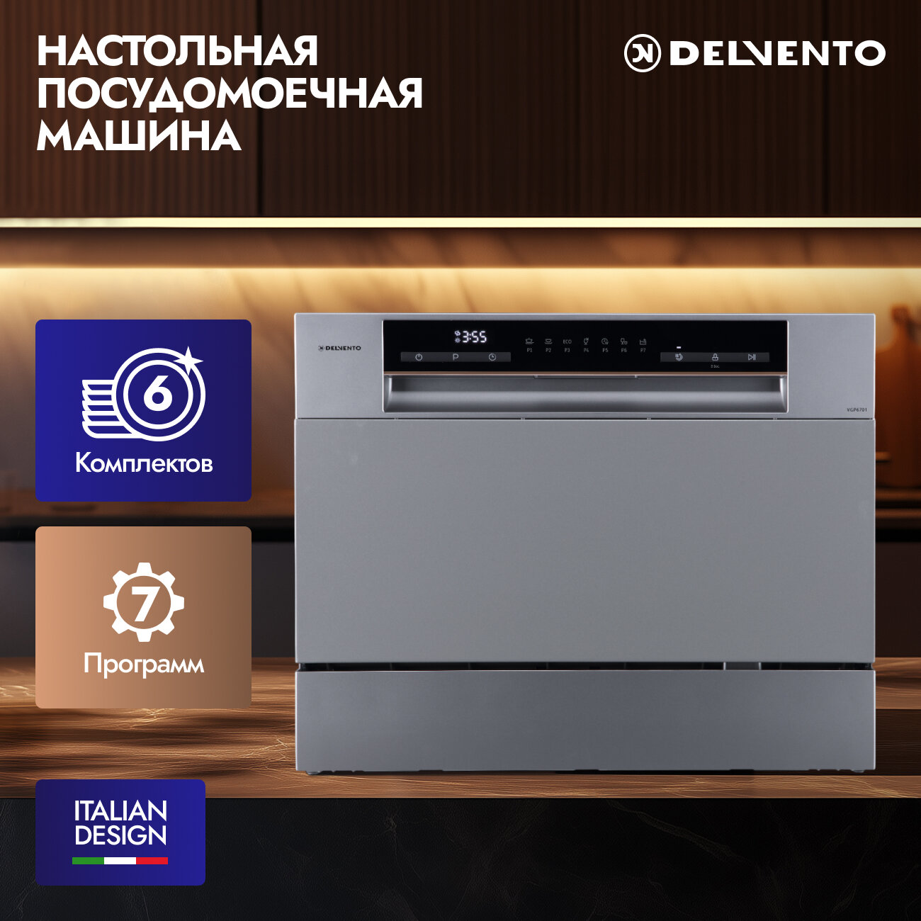 10 цен на Компактная посудомоечная машина настольная DELVENTO VGP6701 / 6 комплектов / 7 программ / Active сушка / серый / класс А+ / половинная загрузка