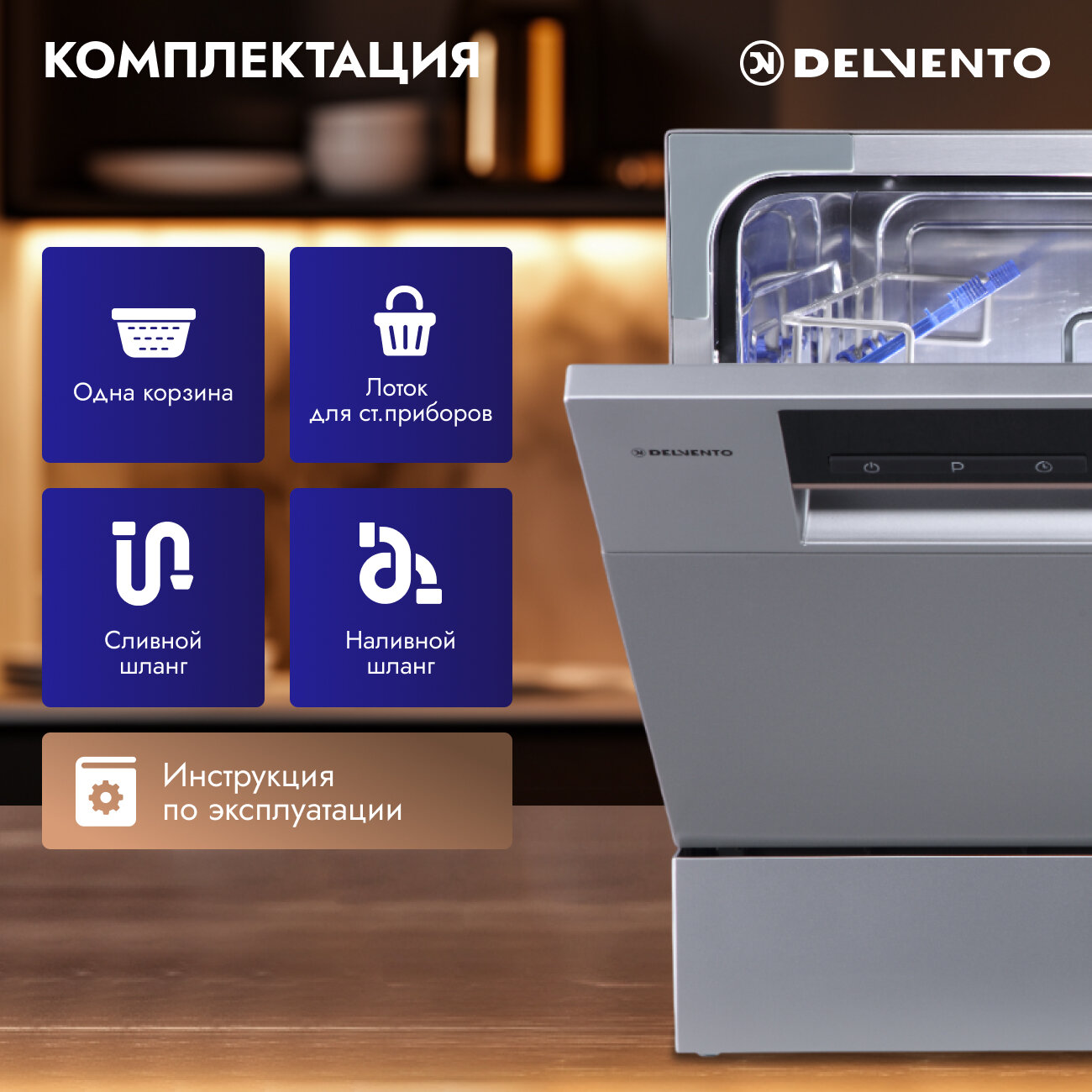 Компактная посудомоечная машина настольная DELVENTO VGP6701 / 6 комплектов / 7 программ / Active сушка / серый / класс А+ / половинная загрузка информация: