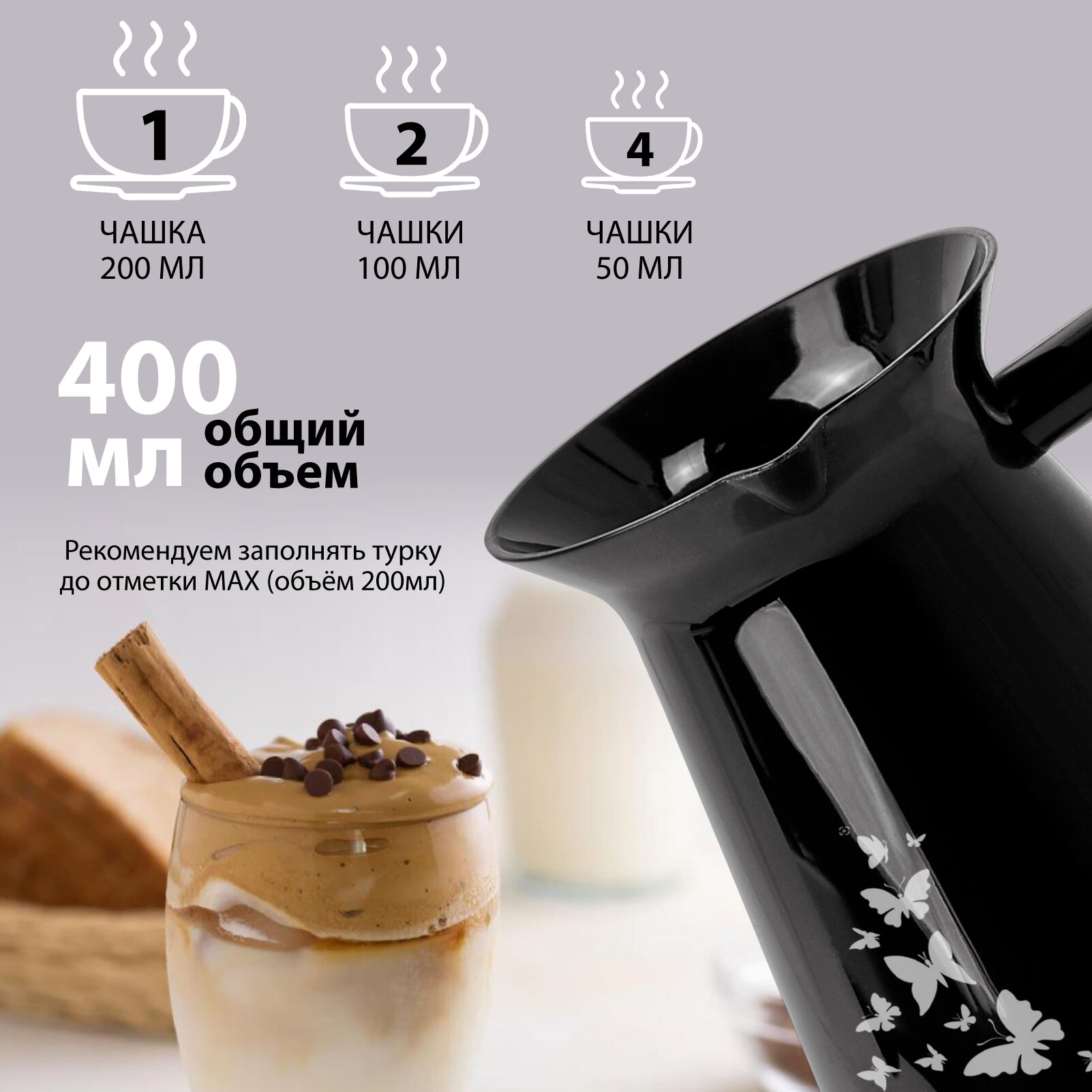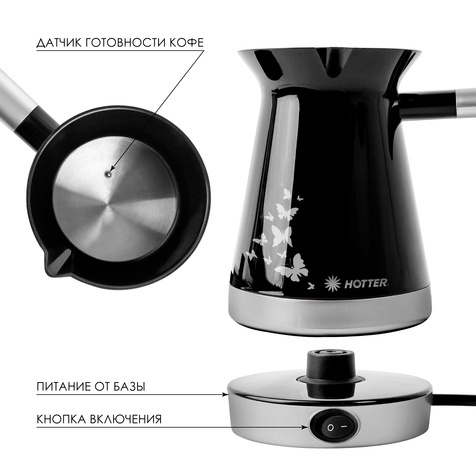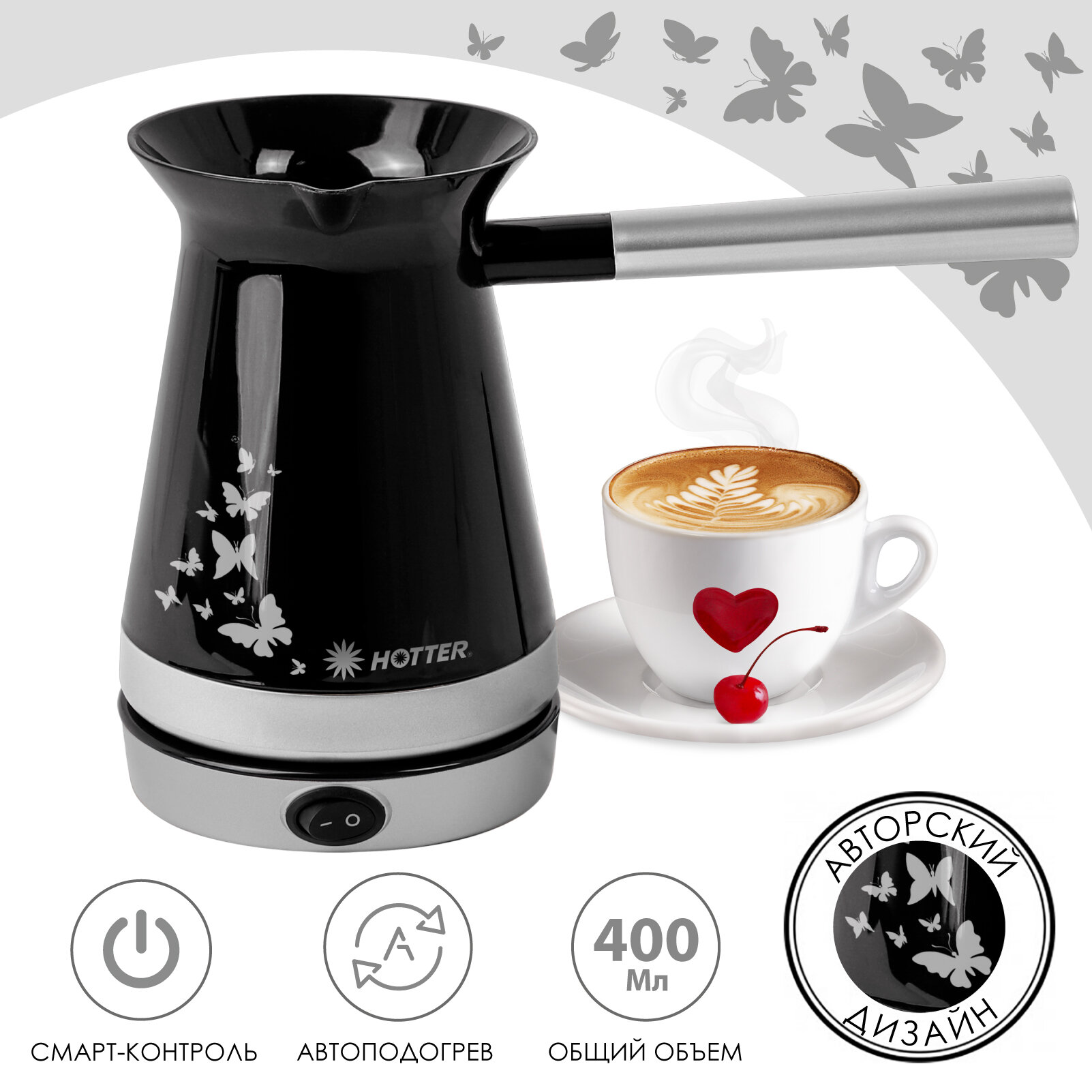Электрическая турка Hotter с автоподогревом и смарт-контролем, черная с дизайном "Бабочки", 1 990 ₽