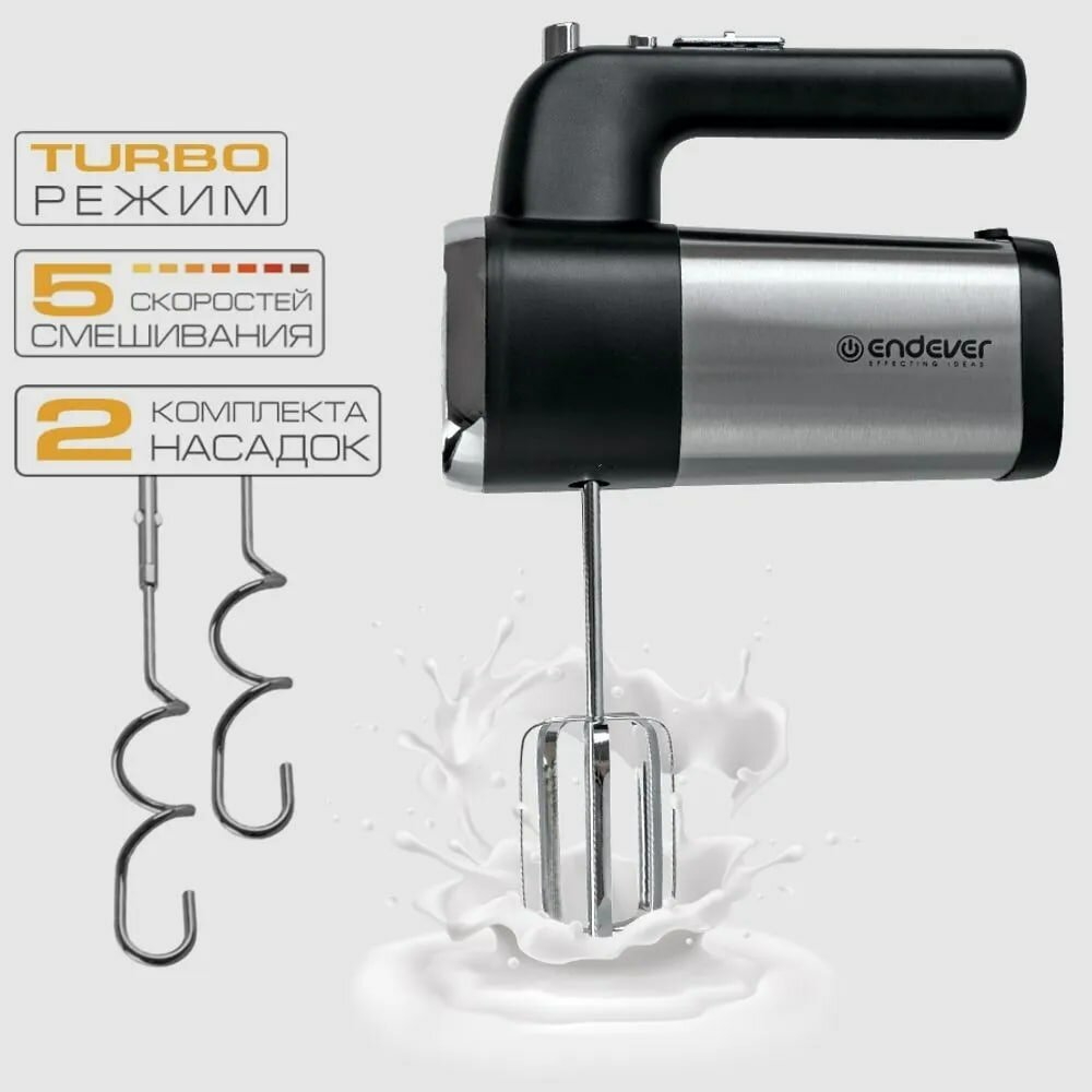 Ручной миксер ENDEVER SIGMA-08 / 500 Вт / 5 скоростей / 2 комплекта насадок информация: