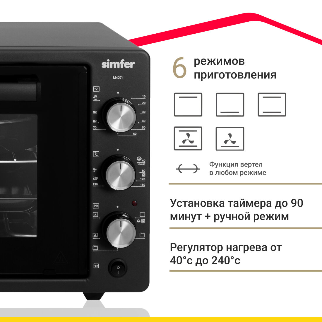 Мини-печь SIMFER M3426ТВ, 3 режима работы, 2 противня, серая