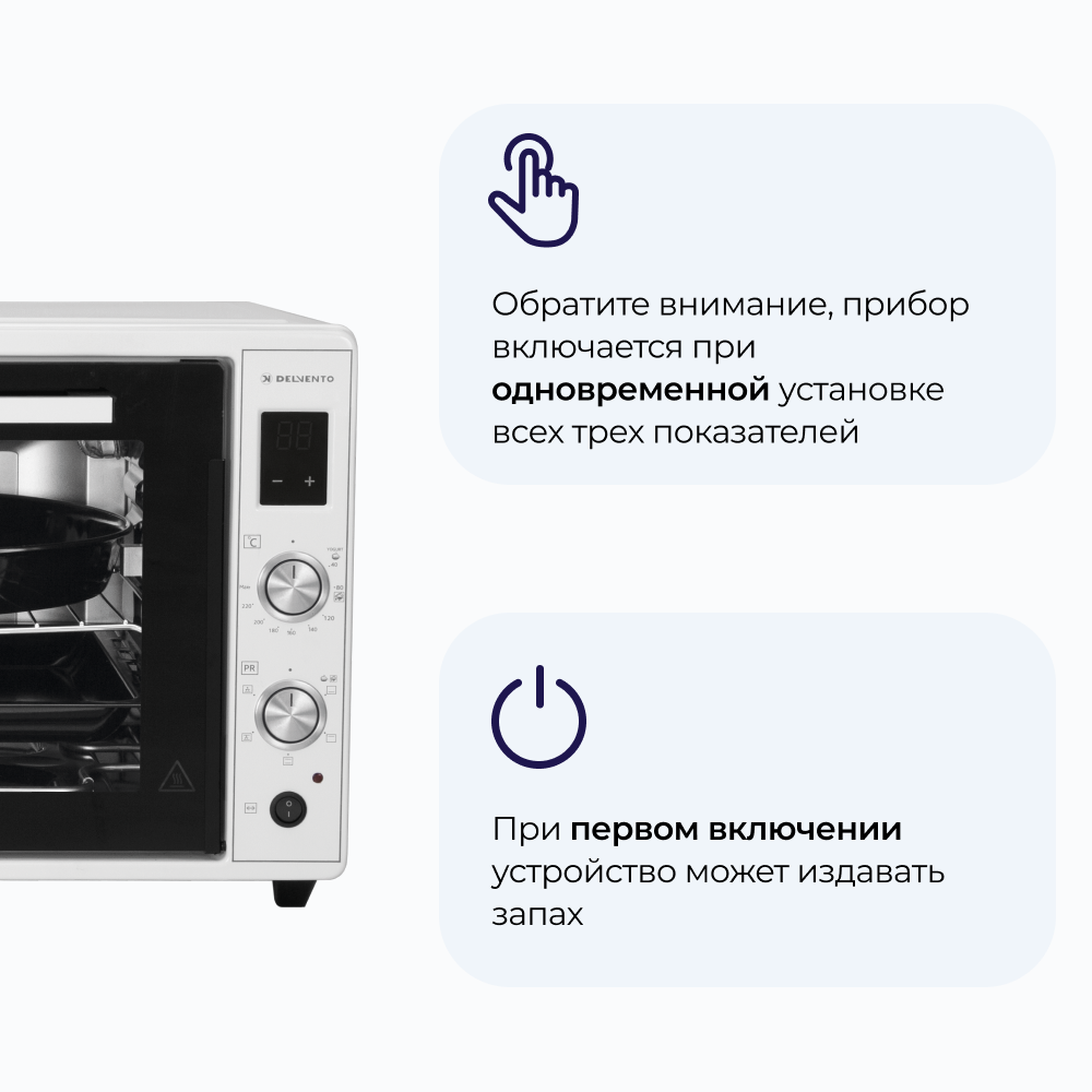 Отзывы на Мини печь электрическая DELVENTO D7010 / дисплей / 70 литров / 5 режимов, конвекция / тостер / таймер 90 минут с оповещением / 2 противня / вертел / хромированная решетка / 240 градусов / автоотключение / цвет белый