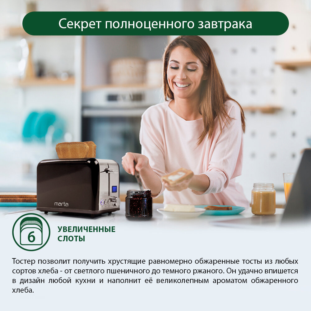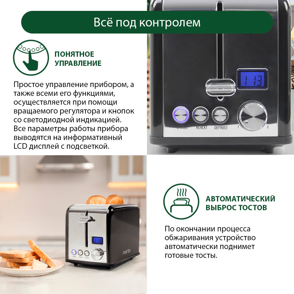 10 цен на Тостер MARTA MT-TS1727B черный жемчуг
