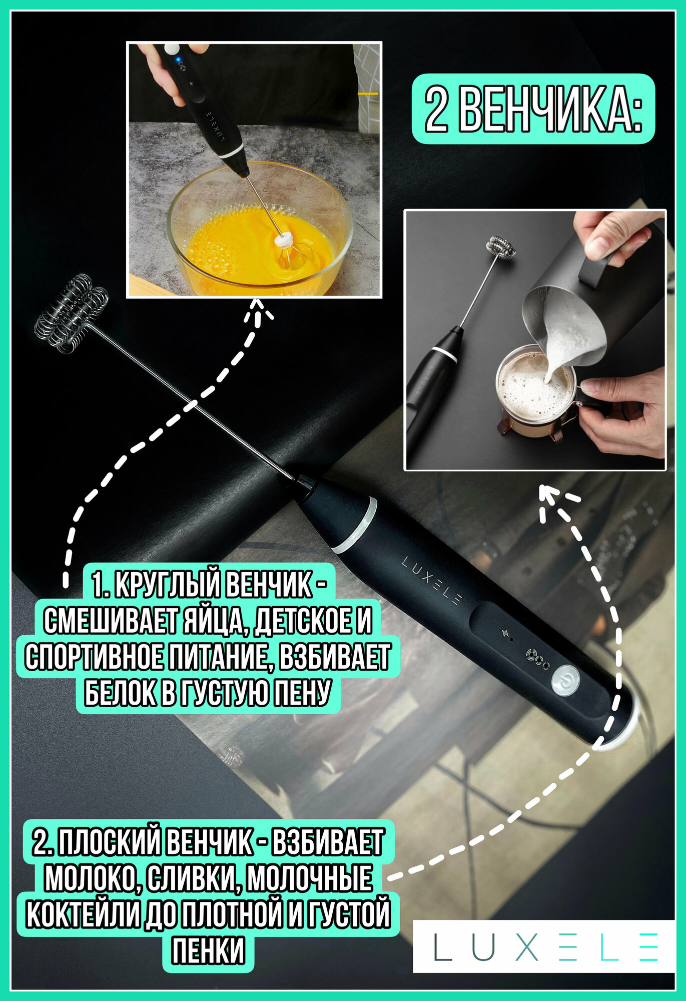 Отзывы на Капучинатор , вспениватель молока и кофе (мини-миксер) с двумя венчиками ручной , беспроводной ( зарядка от usb)
