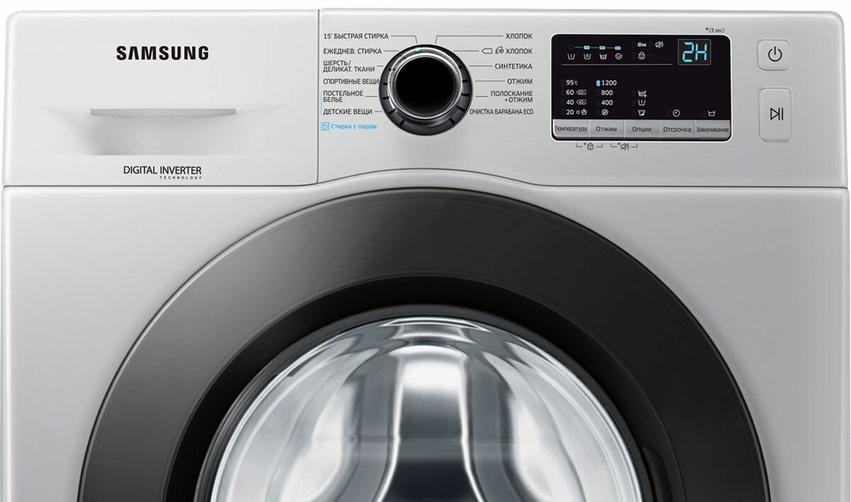 Стиральная машина фронтальная SAMSUNG WW60AG4S00CE/LD белый/серебро (6 кг, диспл, пар, инвертор, дозагрузка)