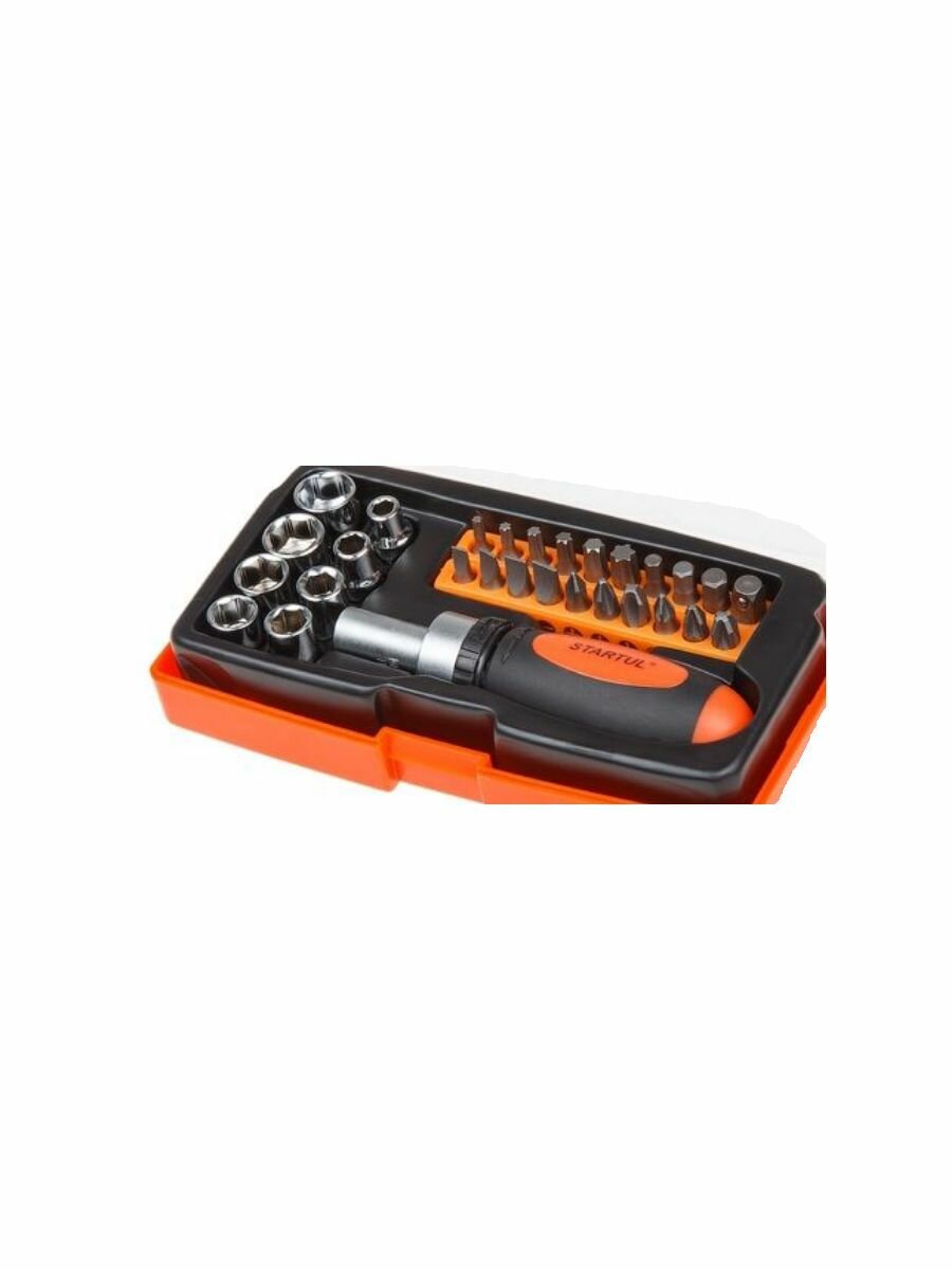 Отвертка реверсивная с набором бит и торцевых головок STARTUL Profi 28 предметов (ST3095-28)