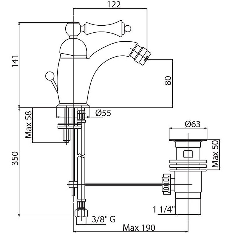 Смеситель Cezares MARGOT-BSM1-03/24-Bi для биде