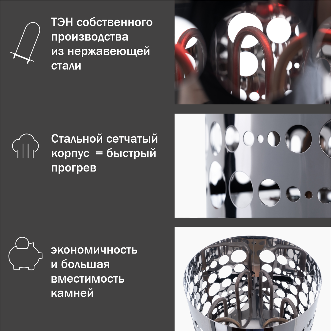 Электрокаменка УМТ "Венера" ЭКМ-9 кВт/220В-380В, корпус из нержавеющей стали, без пульта управления информация: