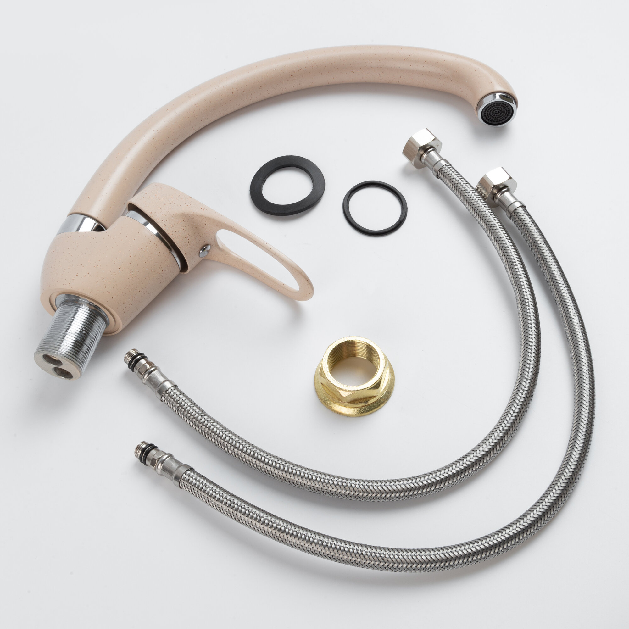 10 цен на Смеситель для кухни поворотный, однорычажный, бежевый под каменную мойку