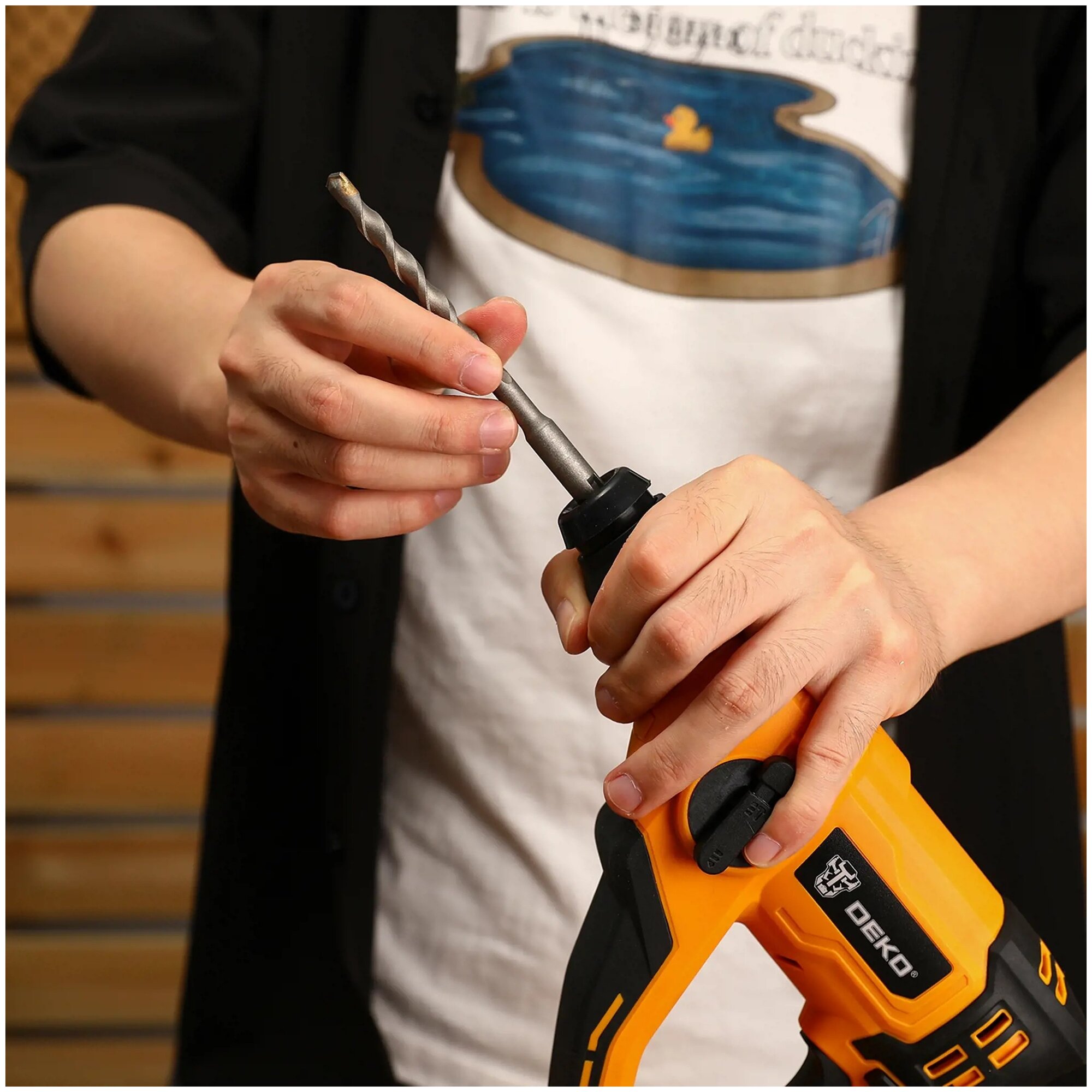 Перфоратор DEKO DKH1100W, 1100 Вт, 5300 уд/мин, 3.5 Дж, 5 буров SDS+ и дополнительный патрон