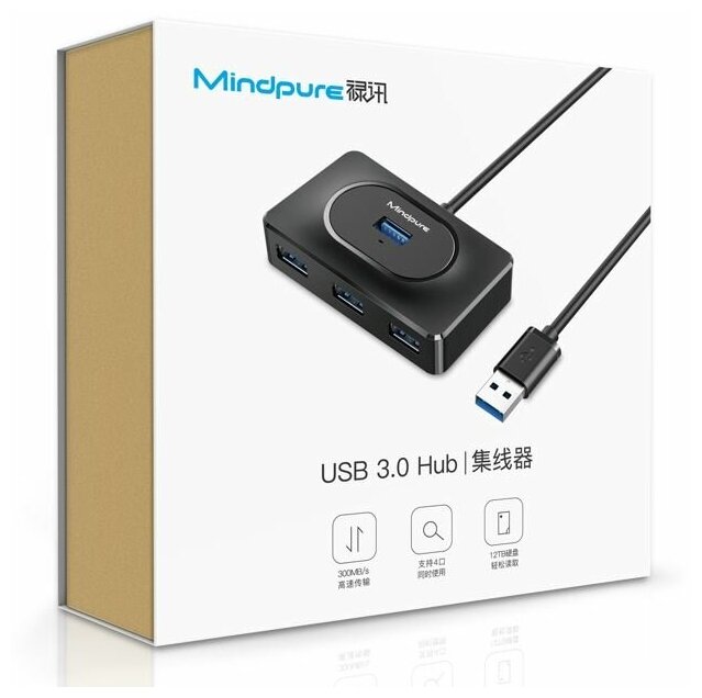 Отзывы на USB концентратор Хаб / Hub 3.0 4 USB + Type-C разъем питания Mindpure US014 1.5м Черный