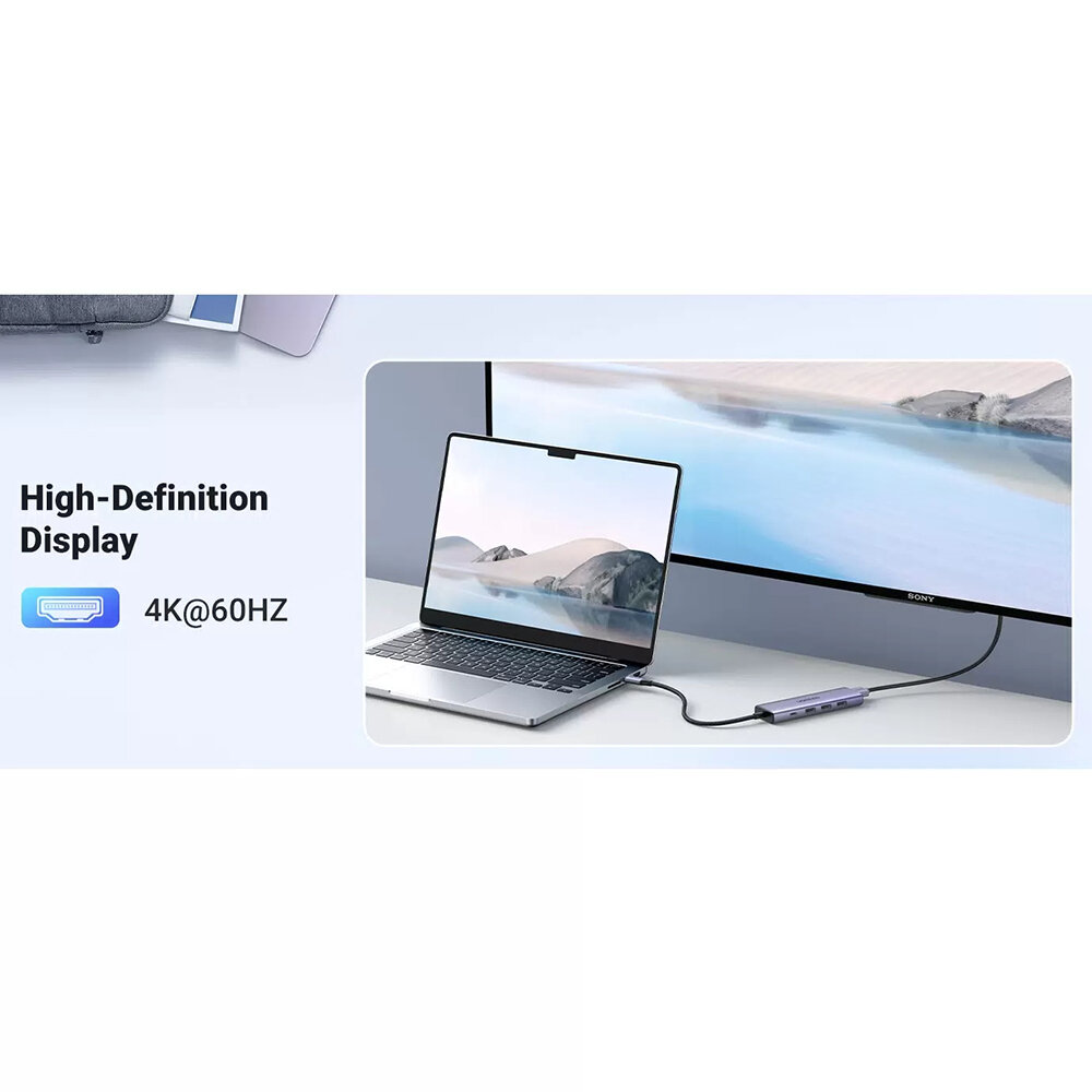 Адаптер UGREEN CM512 (15598) USB-C To 3*USB 3.0 A+HDMI+RJ45+PD Converter - Gray