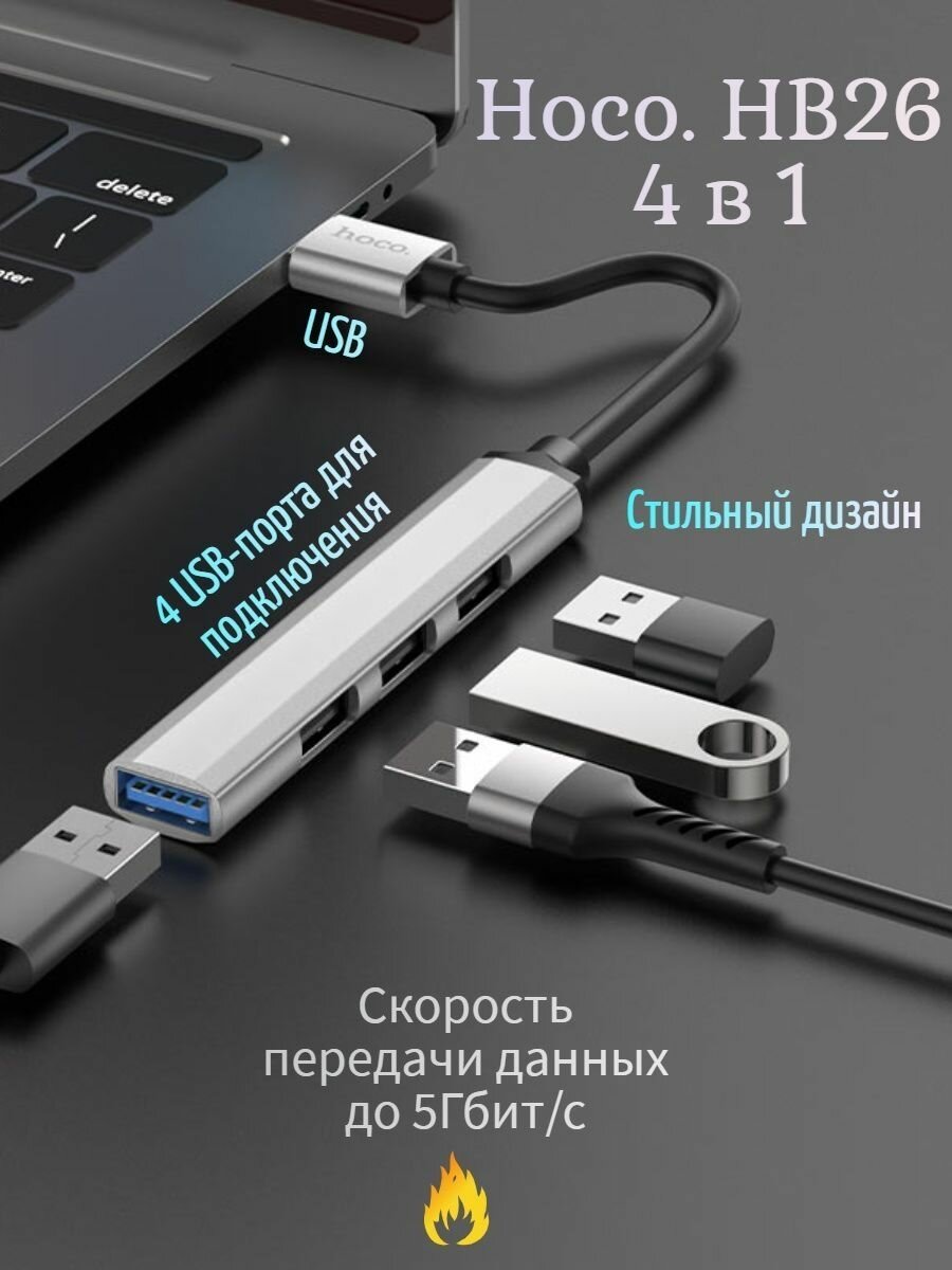 Отзывы на Многофункциональный USB хаб Hoco HB26 USB3.0 + USB2.0*3, поддержка жесткого диска до 1ТБ