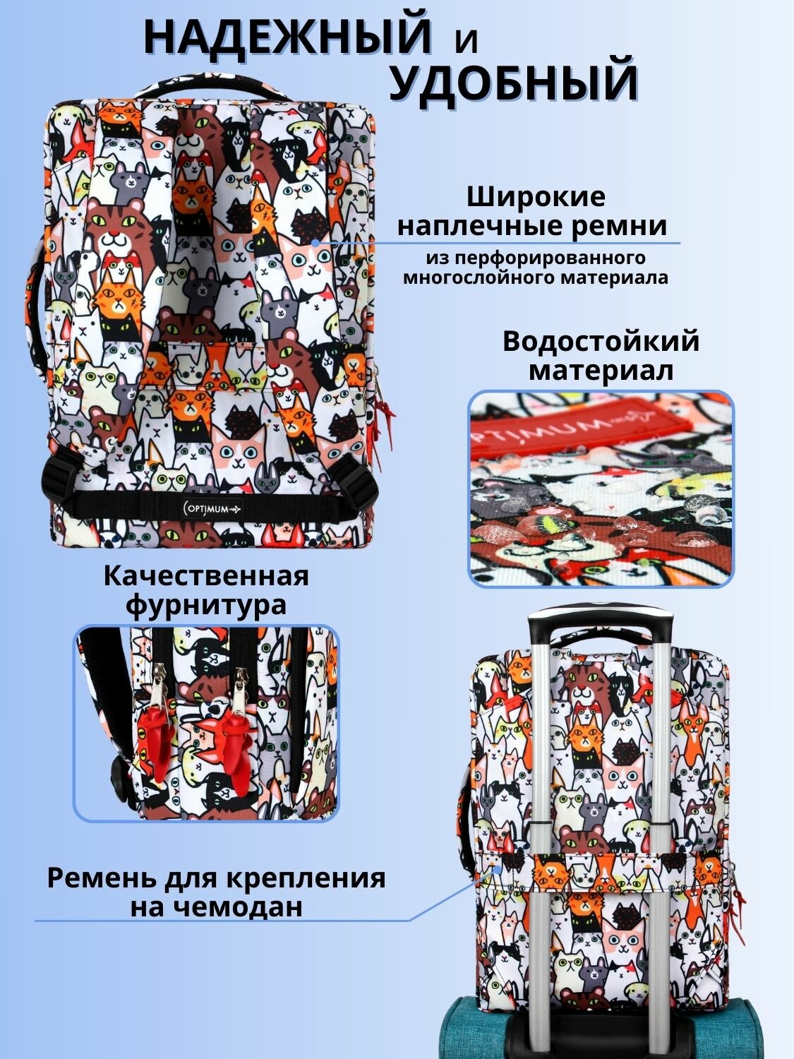 | Особенности | внешний карман, возможность крепления на тележку, защита от воды, карман для телефона, отделение-органайзер |