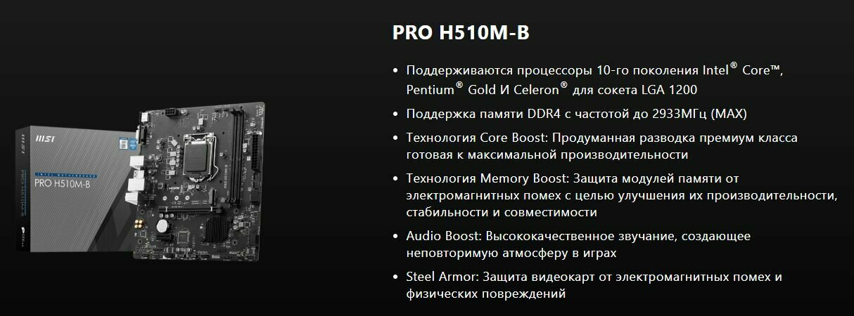 Материнская плата MSI H510M-B LGA1200 DDR4 информация: