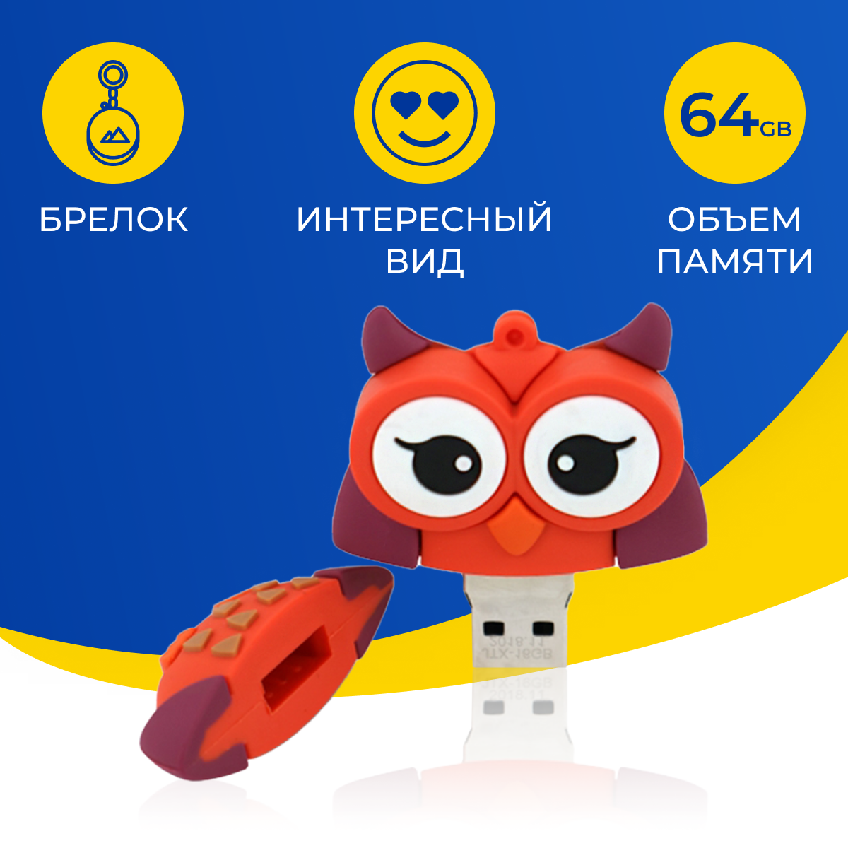 USB Флешка / Оригинальная подарочная флешка USB 64GB / Флеш память ЮСБ 64 ГБ / Внешний накопитель USB Flash Drive (Сова оранжевая) 999 ₽