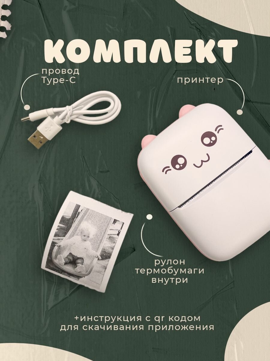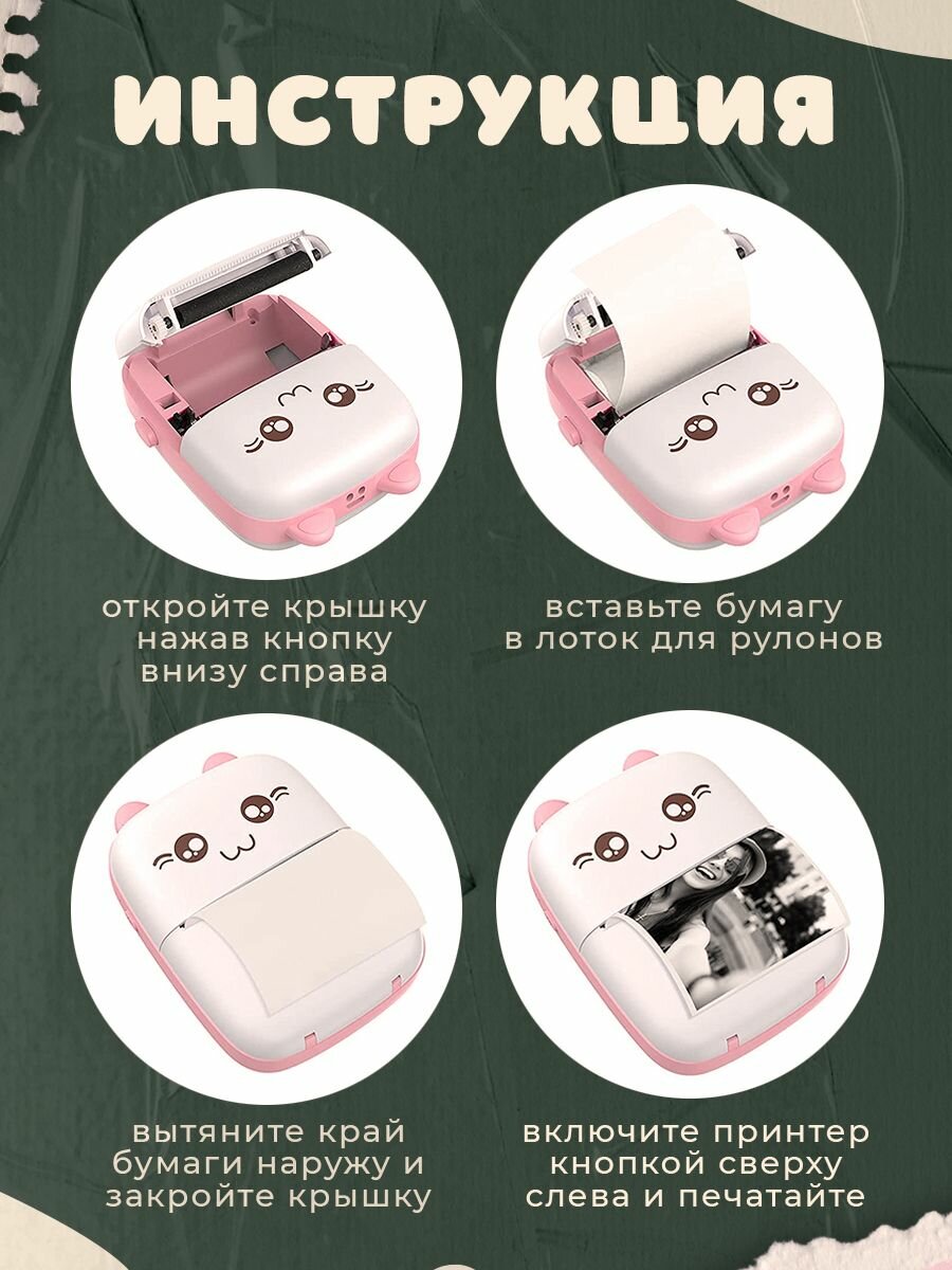 Портативный фотопринтер для детей, розовый информация: