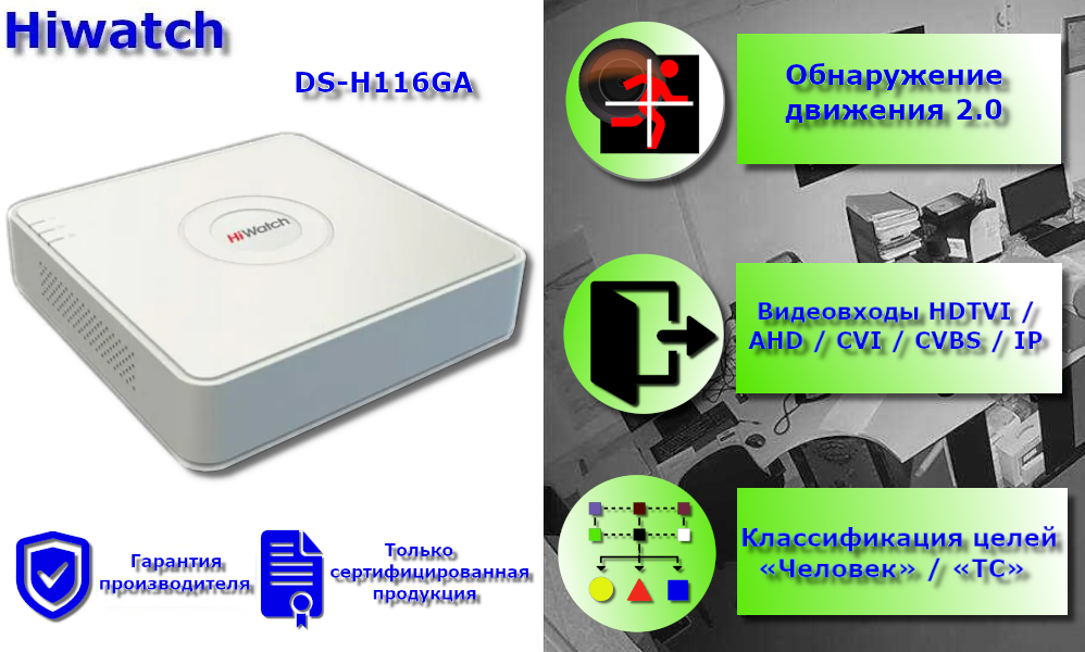 Гибридный регистратор HiWatch DS-H116GA информация: