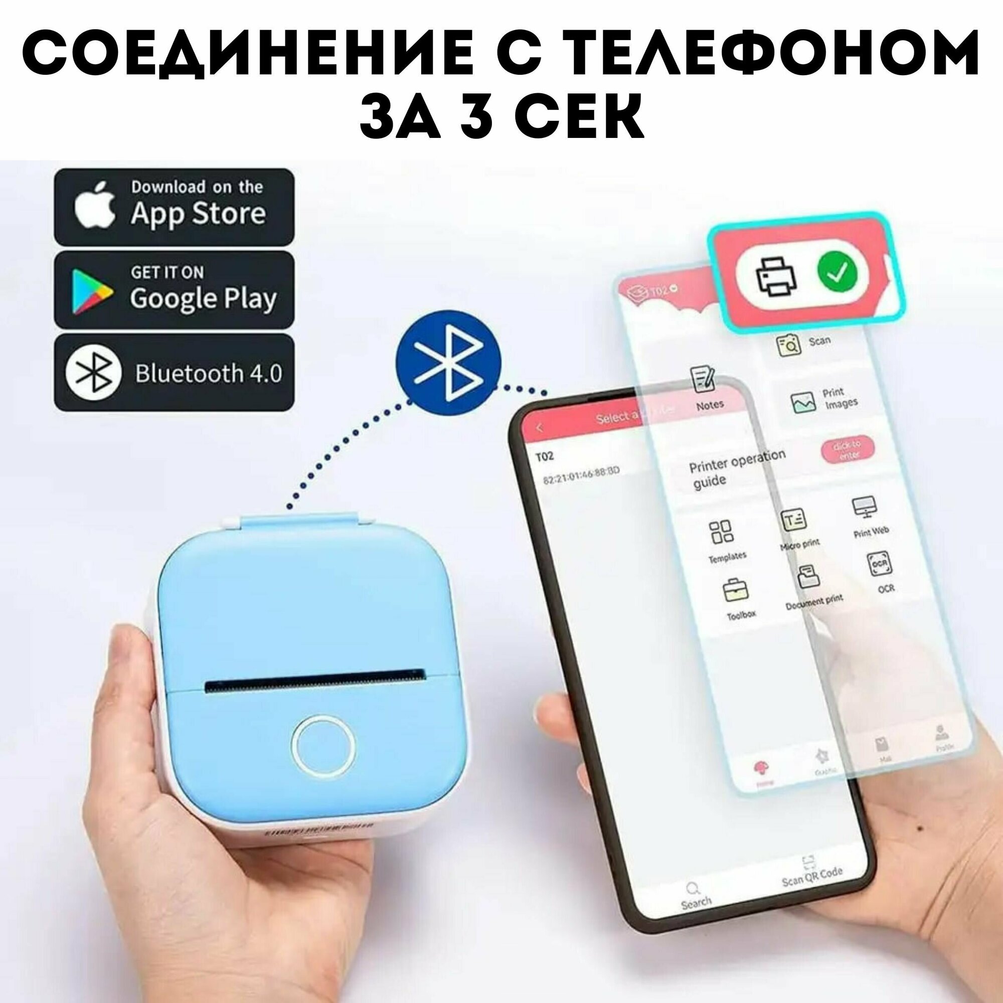 Портативный мини принтер для телефона Phomemo T02 информация:
