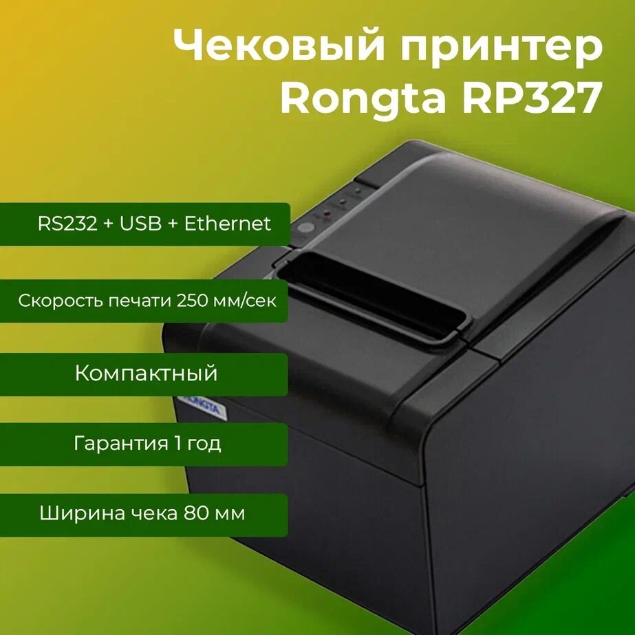 Отзывы на Чековый принтер Rongta RP327 (черный, Ethernet, USB, RR-232, RJ11, ширина печати 80 мм, скорость печати 250 мм/сек)