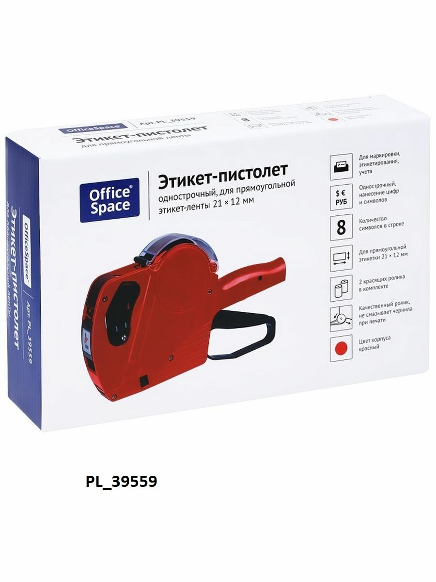 Отзывы на Этикет-пистолет OfficeSpace однострочный, прямоугольная лента, 8 символов, 21х12 мм PL_39559