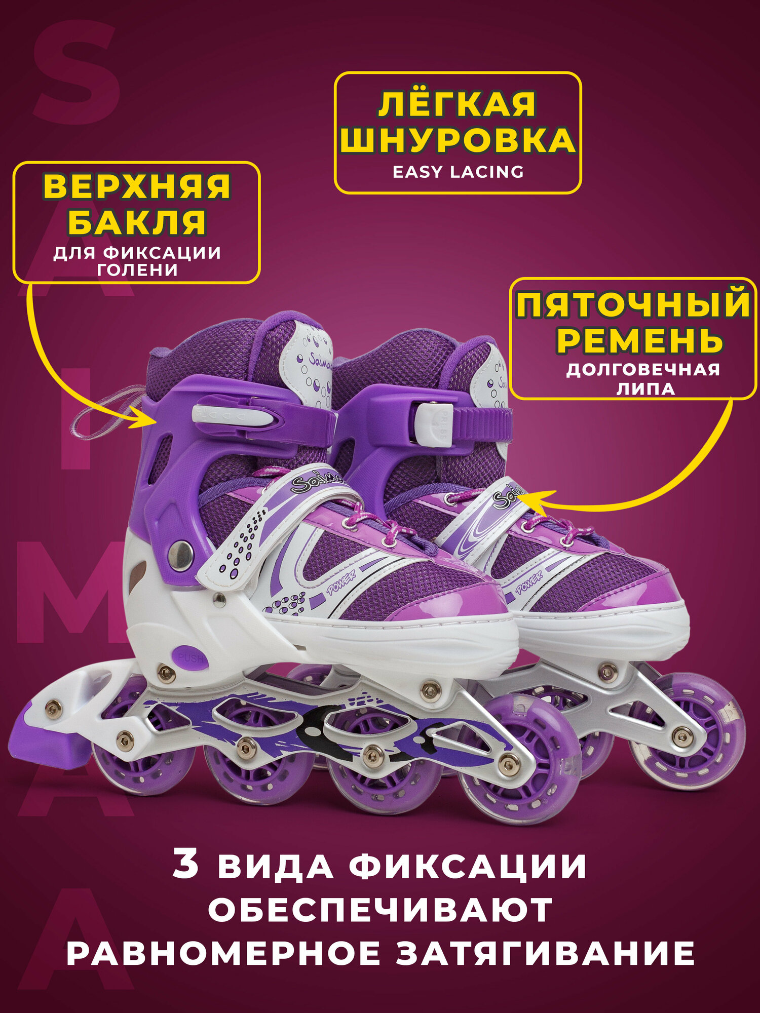 Роликовые коньки раздвижные детские, S (31-34) цвет фиолетовый, комплект защиты в наборе информация: