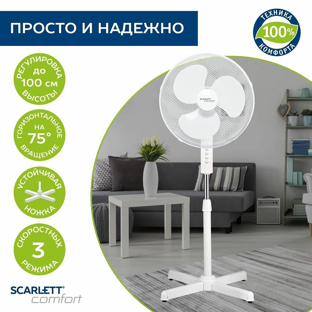 10 цен на Вентилятор напольный Scarlett SC-SF111B31 белый