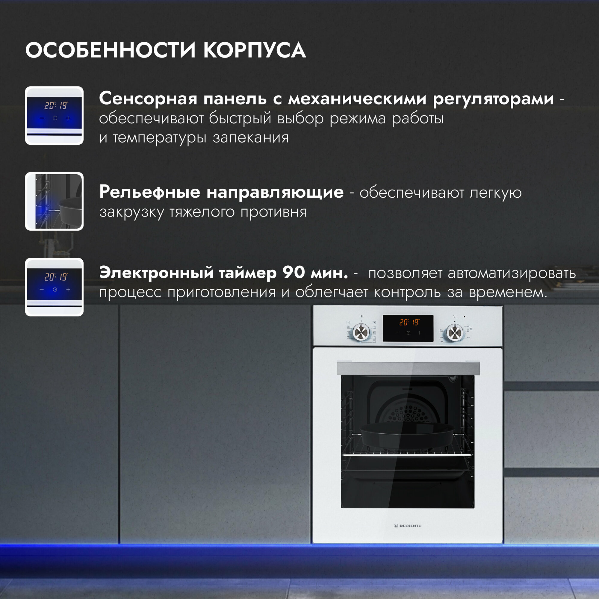 10 цен на Духовой шкаф электрический встраиваемый 45см белый / 9 режимов (гриль + конвекция) DELVENTO V4EC59001 / стеклянный фасад / дисплей, цифровой таймер, часы / пароочистка / двойное стекло LOW-E / подсветка / хром. решетка и 2 противня: стандартный + круглый